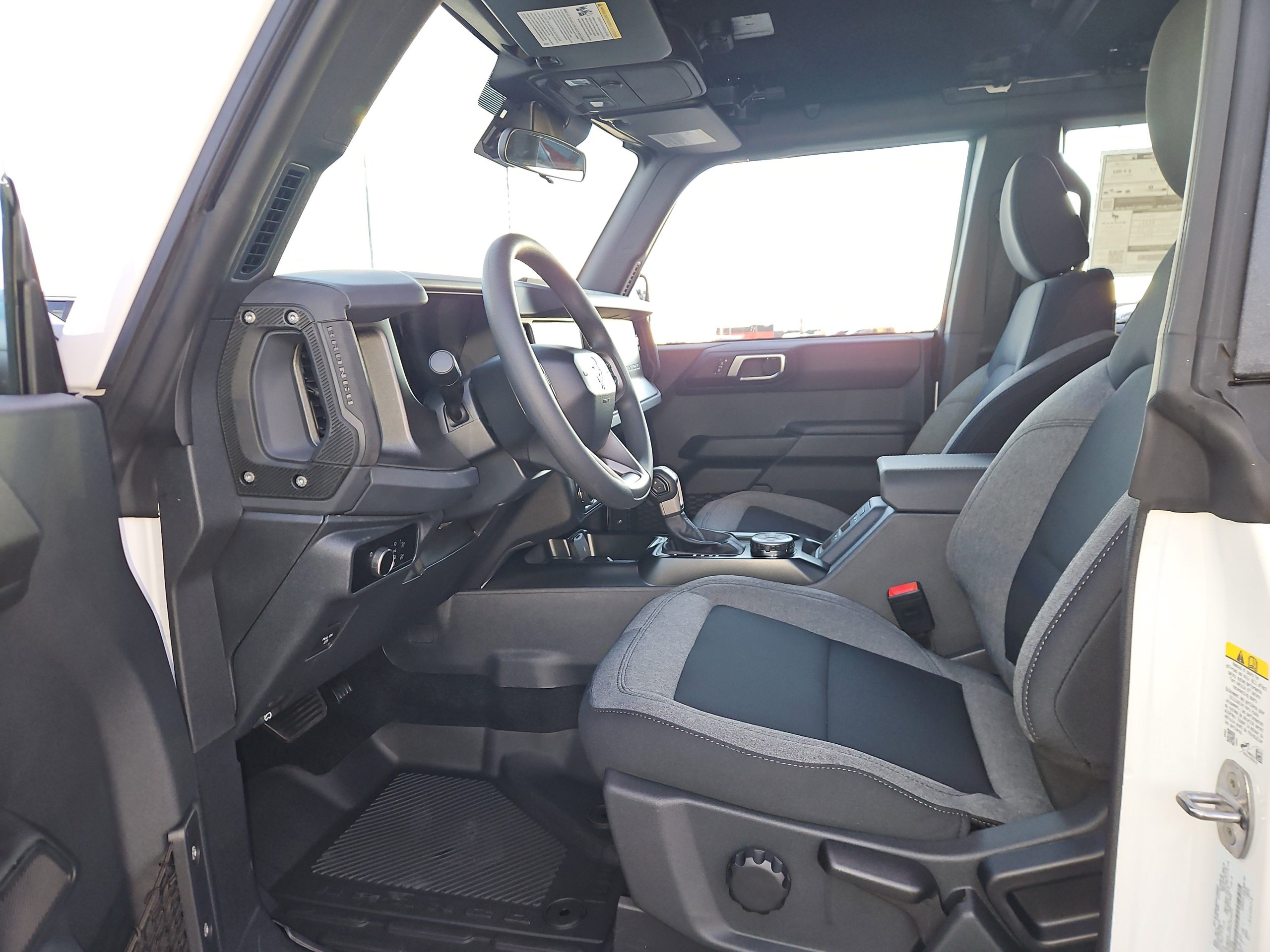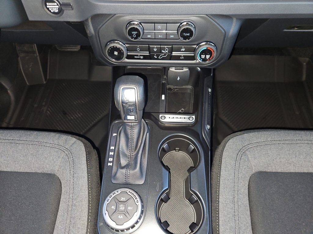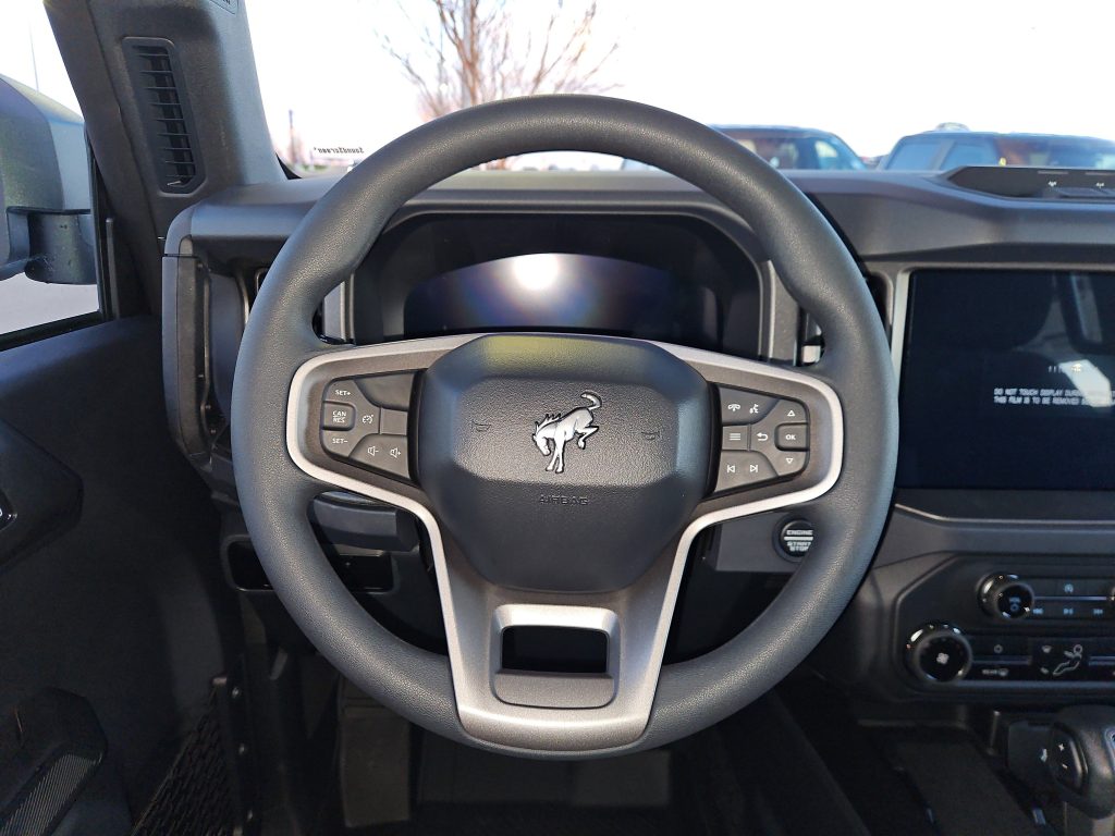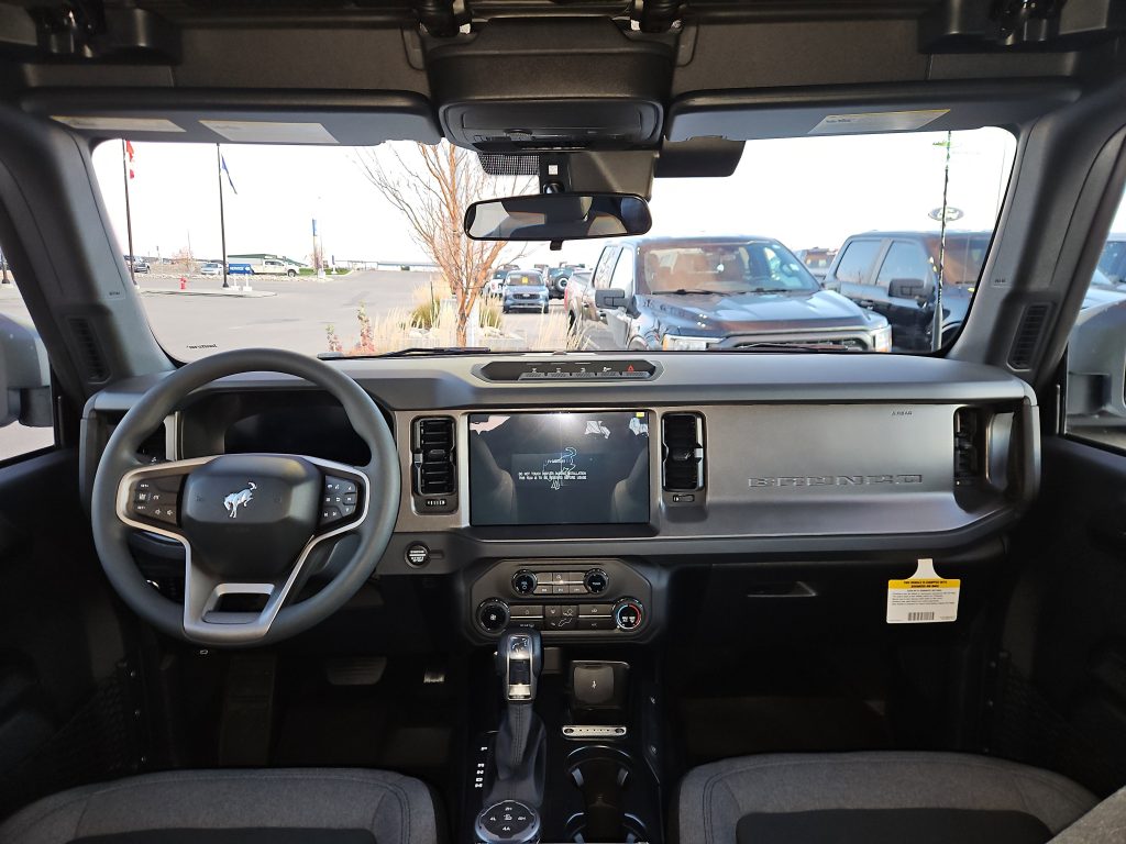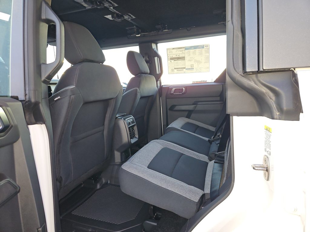 Inside, the Bronco doesn’t skimp on comfort. The black onyx interior features cloth gray and black seats that are both stylish and practical. With thoughtful touches like all-weather floor liners and a sound-deadening headliner, every drive feels special, whether you’re commuting to work or heading out for a weekend getaway.