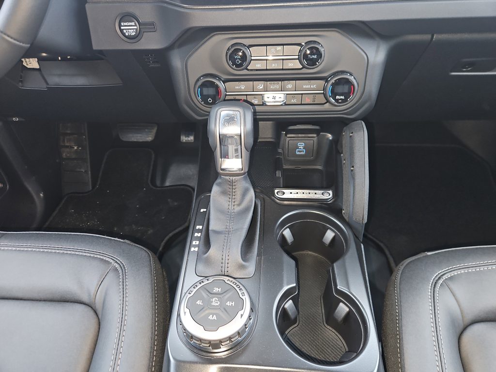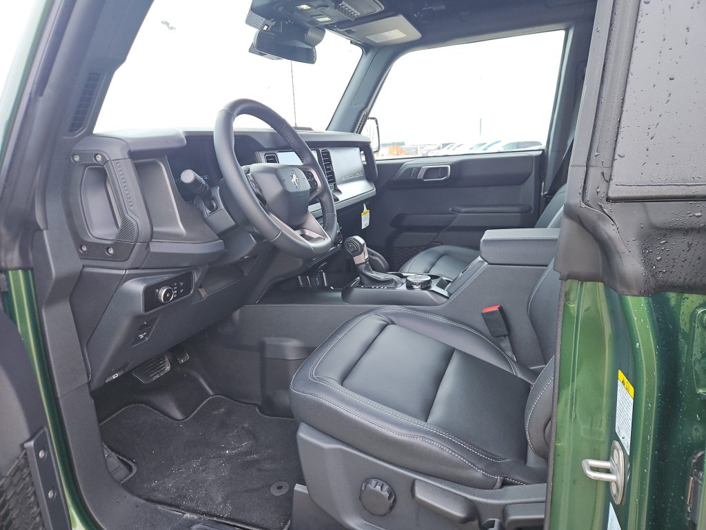 Under the hood, you’ll find a powerful 2.3L EcoBoost I-4 engine, delivering both efficiency and performance. Paired with a 10-speed automatic transmission and advanced 4WD, this Bronco is ready to tackle any terrain, whether you’re navigating city streets or exploring the breathtaking wilderness around Grande Prairie. Imagine the thrill of steering through the trails, the wind in your hair, with the convertible top down, embracing the great outdoors.