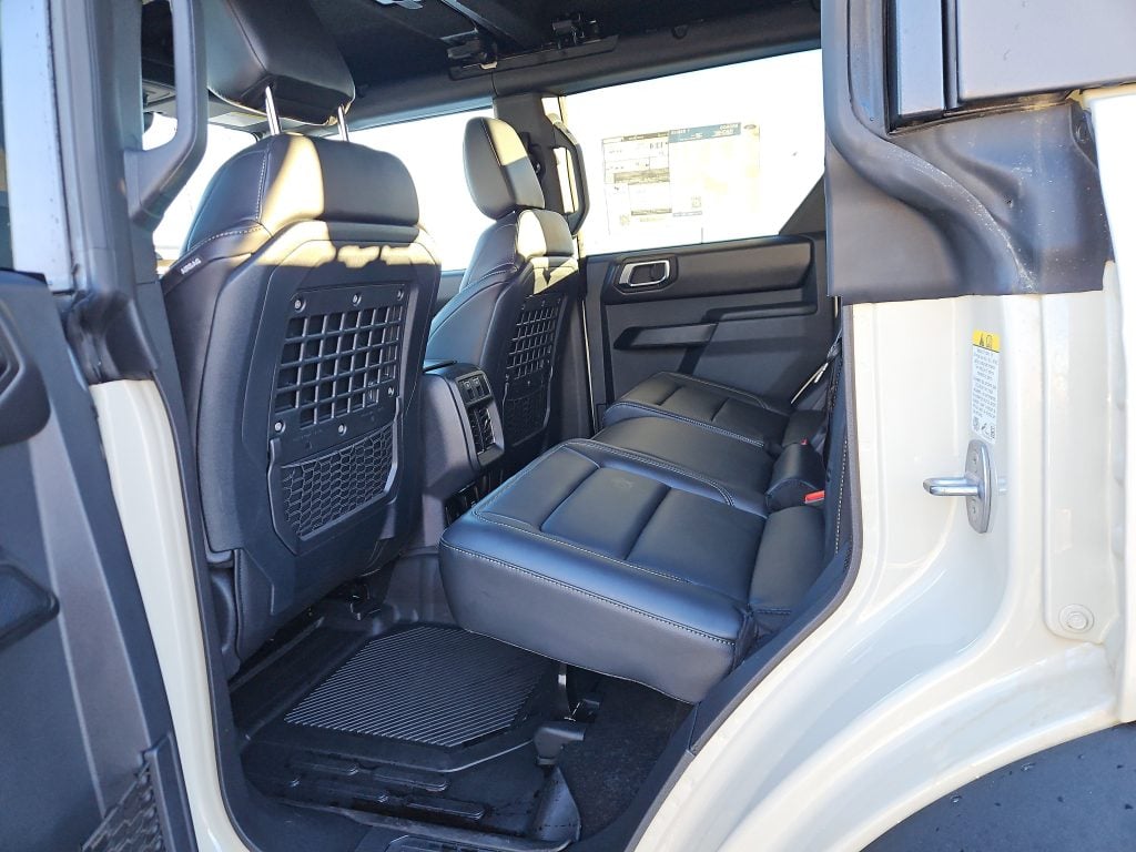 Under the hood, the Bronco boasts a powerful 2.7L EcoBoost V6 engine, delivering an exhilarating driving experience with 10-speed automatic transmission. Whether you’re navigating city streets or tackling off-road trails, the advanced 4WD system and electronic-locking differentials ensure you’ll conquer any terrain with confidence. Plus, the Sasquatch Package enhances its off-road prowess with high-clearance suspension and rugged terrain tires, making it the perfect companion for your next outdoor escapade.
