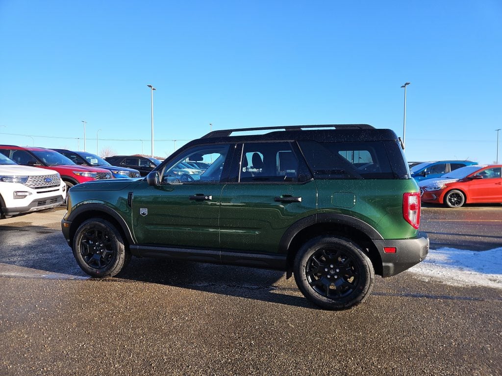 Introducing the all-new 2025 Ford Bronco Sport Big Bend, a striking SUV that’s ready to take you on unforgettable adventures. Dressed in a vibrant Eruption Green Metallic finish, this vehicle is not just about looks; it’s about making a statement wherever you go. Imagine cruising through Grande Prairie and beyond, turning heads with its bold design and unique black accents, including a textured matte black hood graphic and distinctive badging.