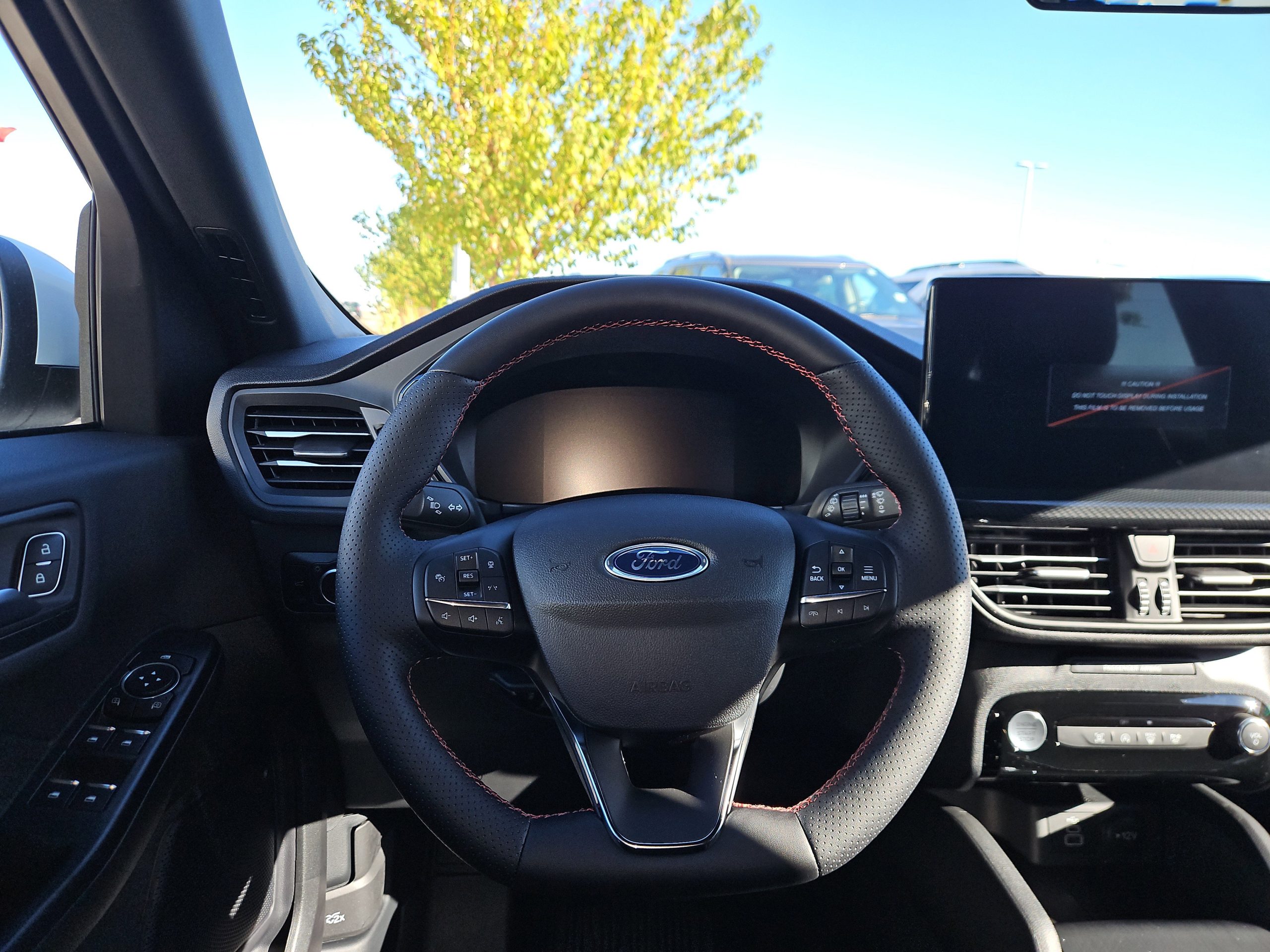 Step inside, and you’ll find a thoughtfully designed interior that seamlessly marries comfort and technology. With partial vinyl/cloth seats adorned with striking ebony and red stitching, every journey feels special. The 13.2-inch touchscreen with SYNC 4 technology keeps you connected, offering features like navigation, live traffic updates, and enhanced voice recognition. Plus, with Ford Co-Pilot360 Assist+, you can drive with peace of mind, thanks to adaptive cruise control, lane centering assist, and more.