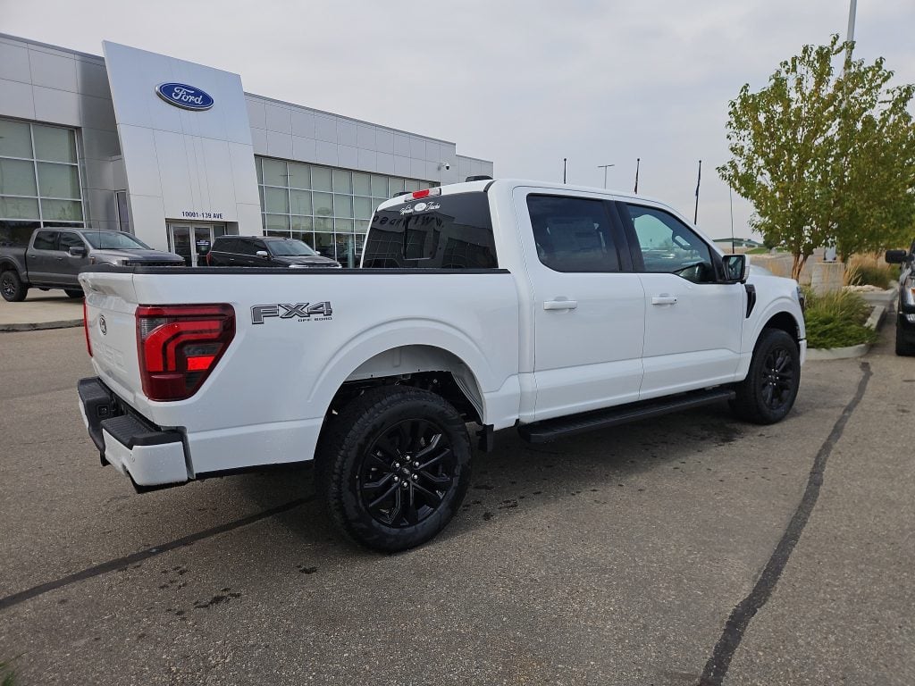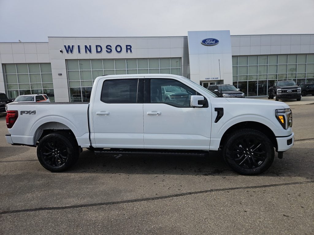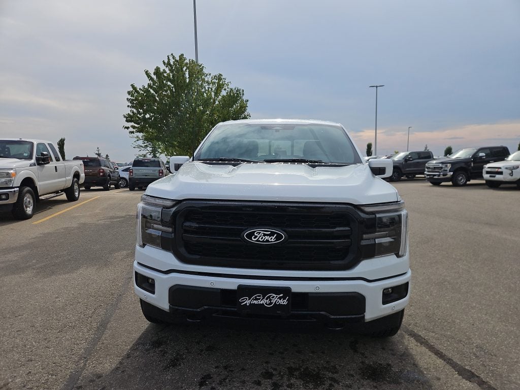 Introducing the 2025 Ford F-150 Lariat, a truck that embodies strength and sophistication, now available at Windsor Ford in Grande Prairie. Finished in a striking Oxford White, this SuperCrew truck is designed to turn heads while delivering exceptional performance.