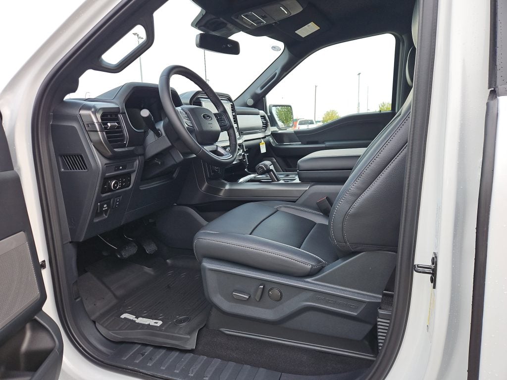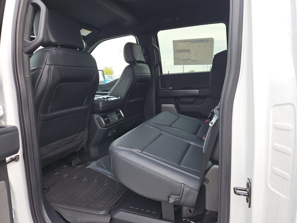 Step inside, and you’ll be greeted by a world of comfort and technology. The Lariat Black Appearance Package enhances the interior with dark accents and premium synthetic seats, creating an inviting atmosphere. With features like a 12-inch touchscreen, Apple CarPlay, and Android Auto, staying connected on the road is effortless. Plus, the Mobile Office Package, complete with wireless charging and lockable storage, transforms your truck into a workspace on wheels—perfect for those who are always on the go.