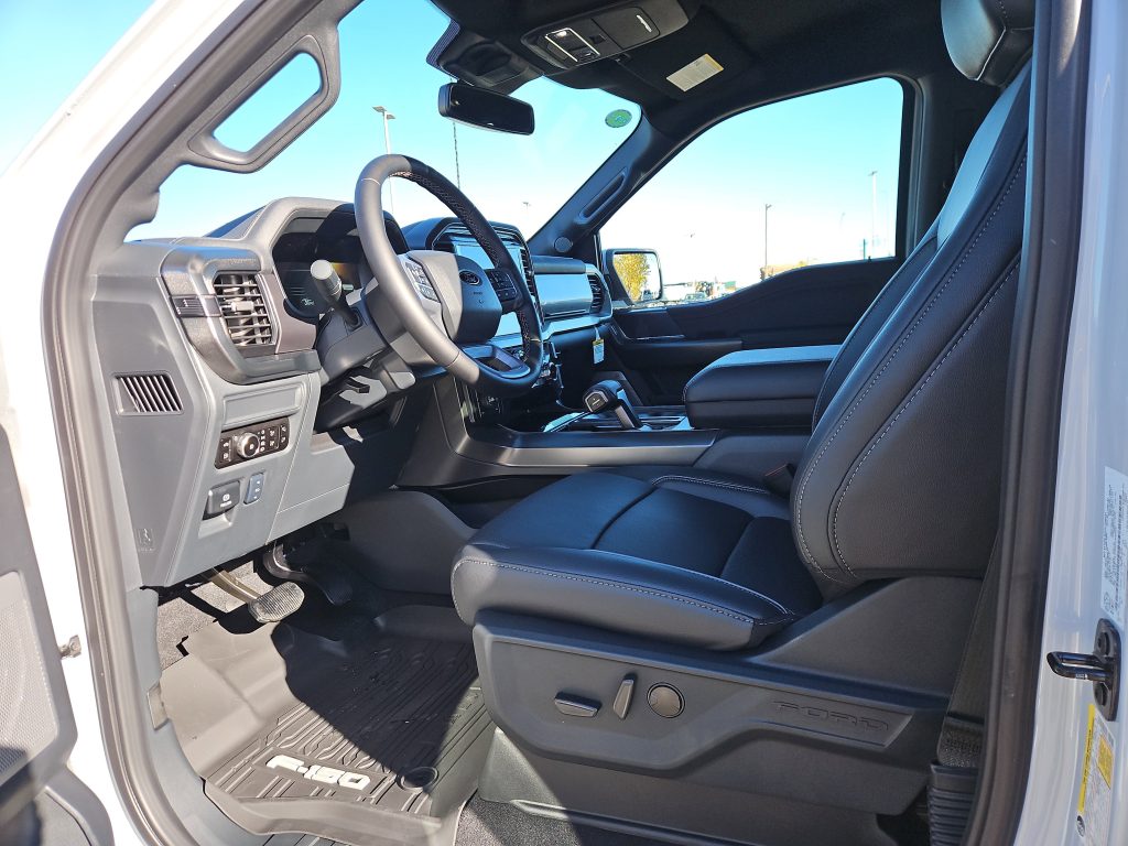 Step inside, and you’ll find a world of comfort and technology. The spacious interior is designed with premium synthetic seats and advanced features like the SYNC 4 system, complete with a 12-inch touchscreen that responds to your every command. With Apple CarPlay and Android Auto compatibility, staying connected while on the go has never been easier. And let’s not forget the Pro Power Onboard feature, providing you with 7.2KW of power to fuel your tools or devices wherever you are.