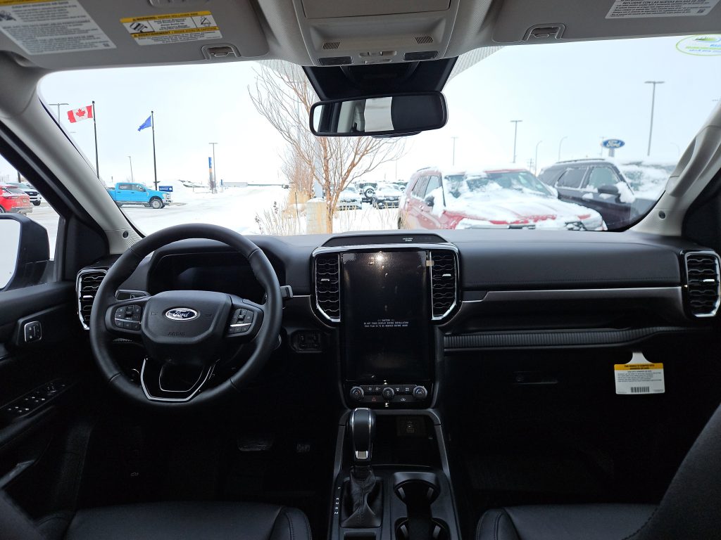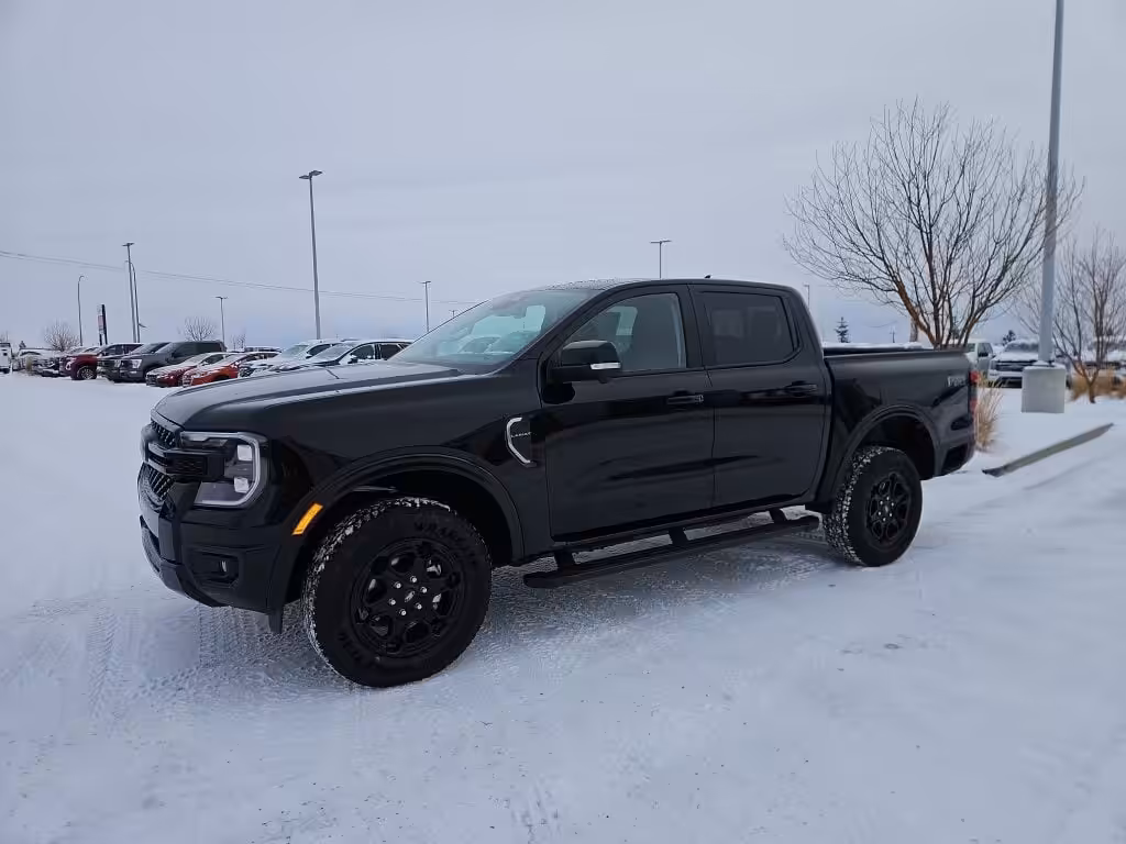 Introducing the 2025 Ford Ranger Lariat, a truck that perfectly balances rugged capability with modern sophistication. Dressed in a striking Shadow Black exterior, this SuperCrew beauty is more than just a pretty face—it’s built to tackle any adventure you throw its way, whether you’re navigating the backroads of Grande Prairie or cruising through town.