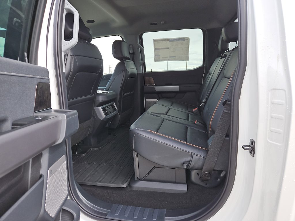Step inside, and you’ll find a cabin designed for relaxation and connectivity. Premium synthetic seats, a B&O Unleashed sound system, and a power-sliding rear window create an inviting atmosphere for you and your passengers. The all-weather floor mats ensure that no matter where your adventures take you, your truck remains clean and ready for the next outing.