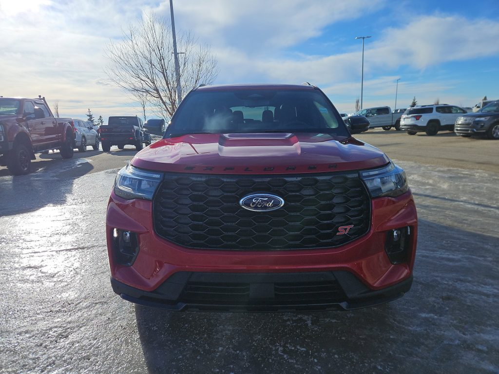 Introducing the all-new 2026 Ford Explorer ST, a stunning blend of power, style, and advanced technology, now available at Windsor Ford in Grande Prairie. Dressed in a striking Rapid Red Metallic Tinted Clearcoat, this SUV is designed to turn heads while delivering an exhilarating driving experience.