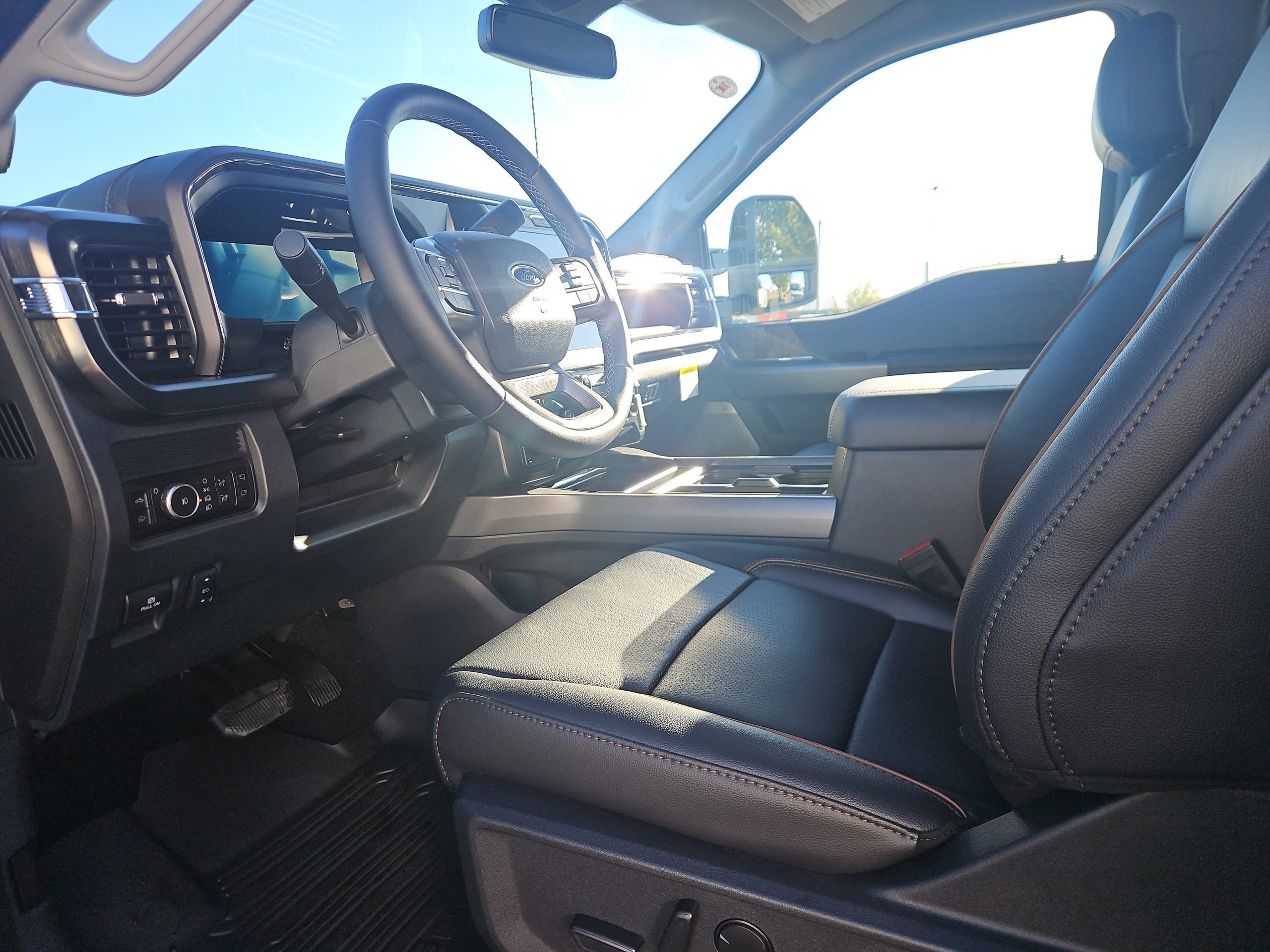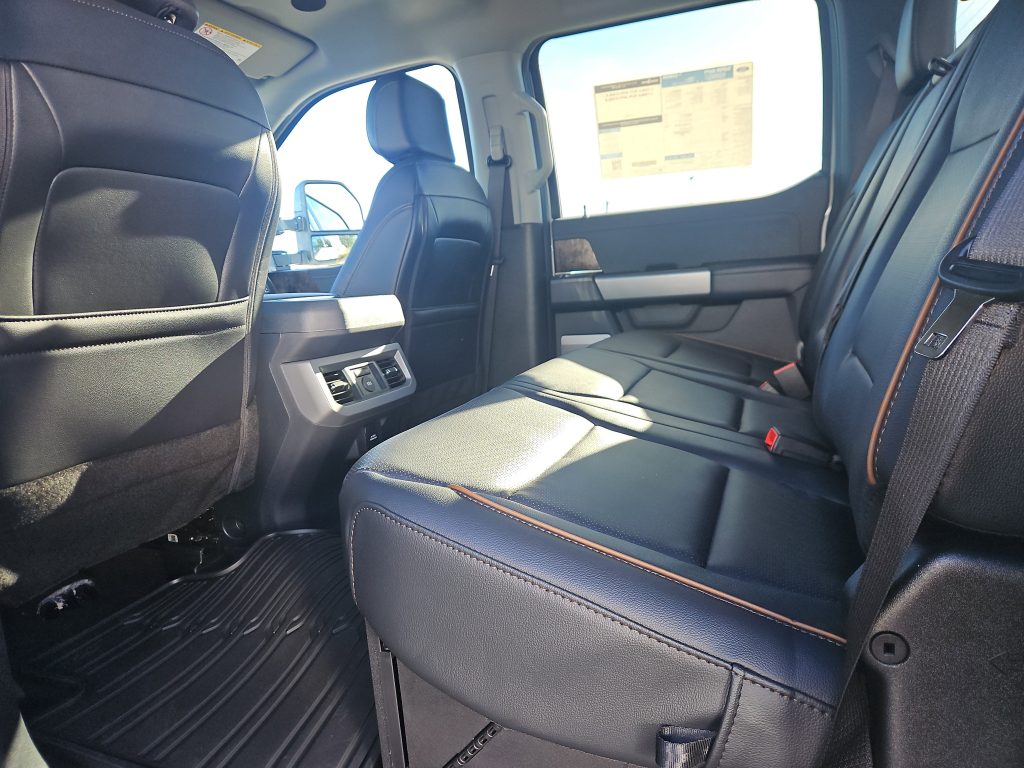 Step inside, and you’ll find a beautifully appointed cabin featuring premium synthetic seats and the Lariat Ultimate Package, which includes a head-up display and a B&O Unleashed Sound System by Bang & Olufsen. The spacious interior is designed for comfort, with power-deployable running boards and a power-sliding rear window that enhance accessibility and convenience.