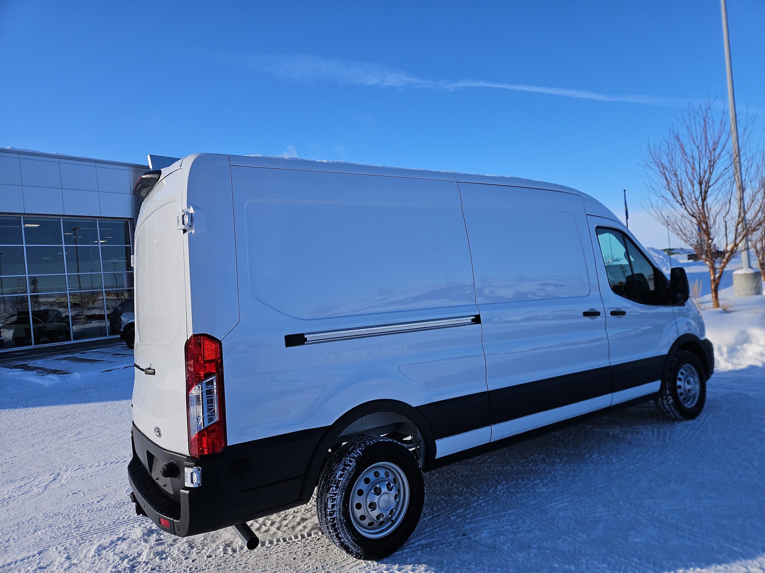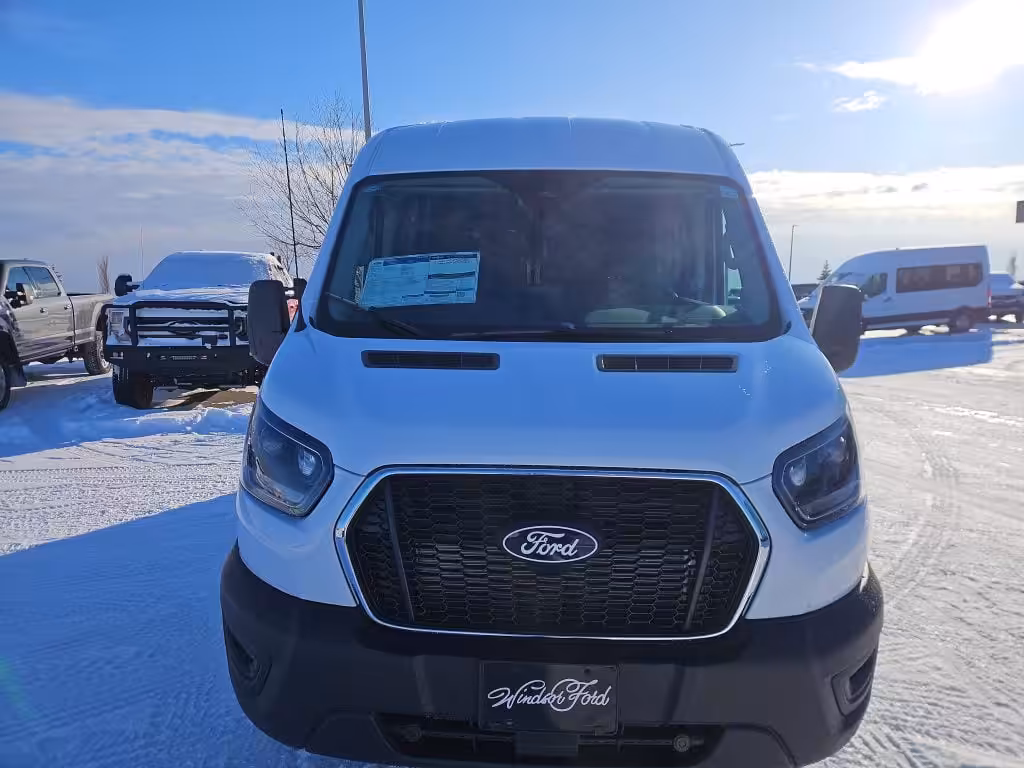 Introducing the 2026 Ford Transit Cargo Van, a robust and reliable partner for your business needs, now available at Windsor Ford in Grande Prairie. Dressed in a striking Oxford White exterior, this full-size cargo van is designed to make an impression while delivering exceptional functionality.