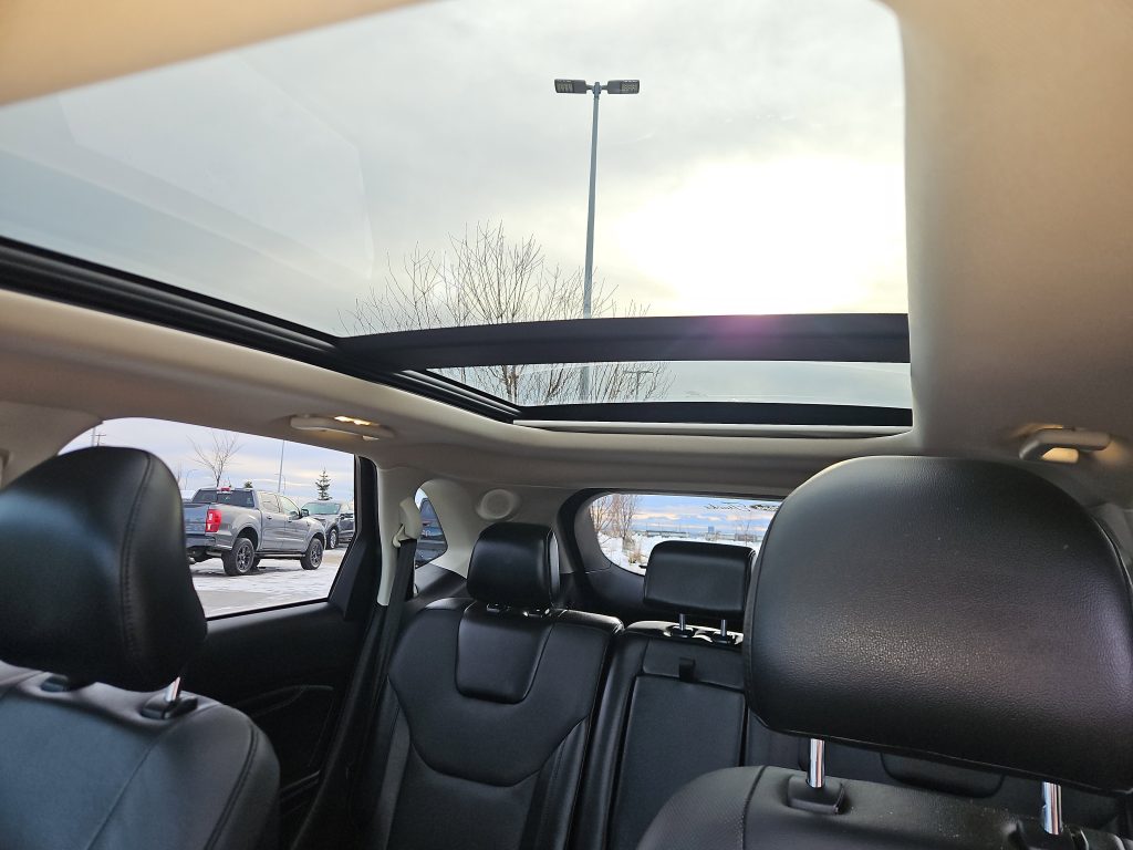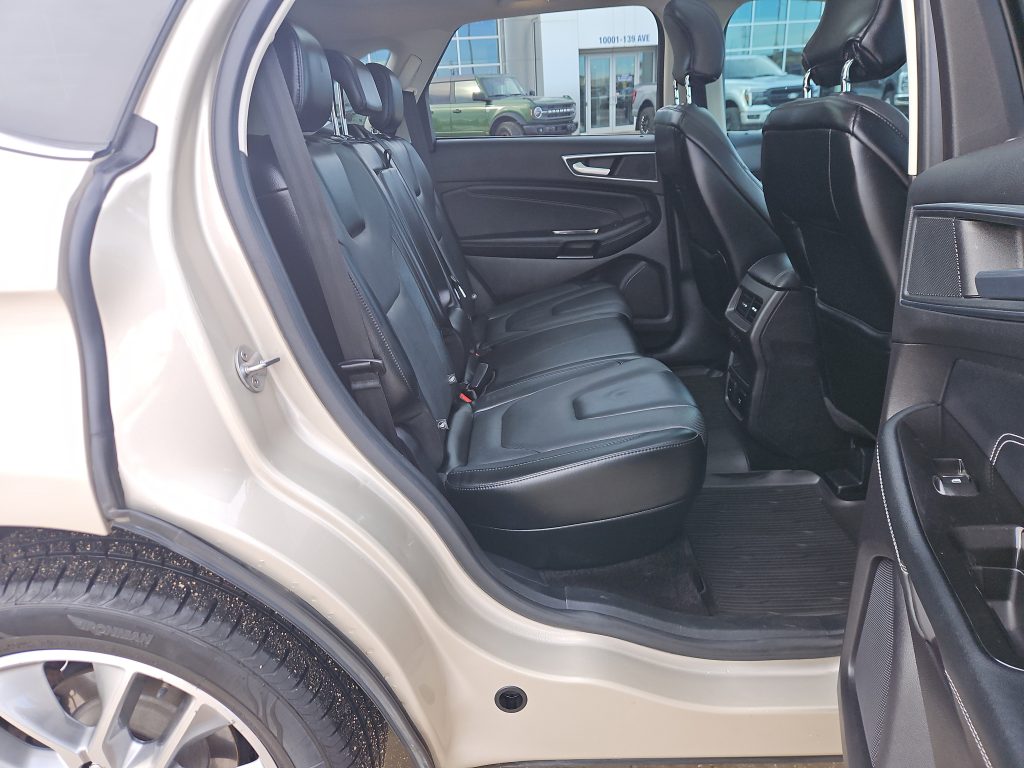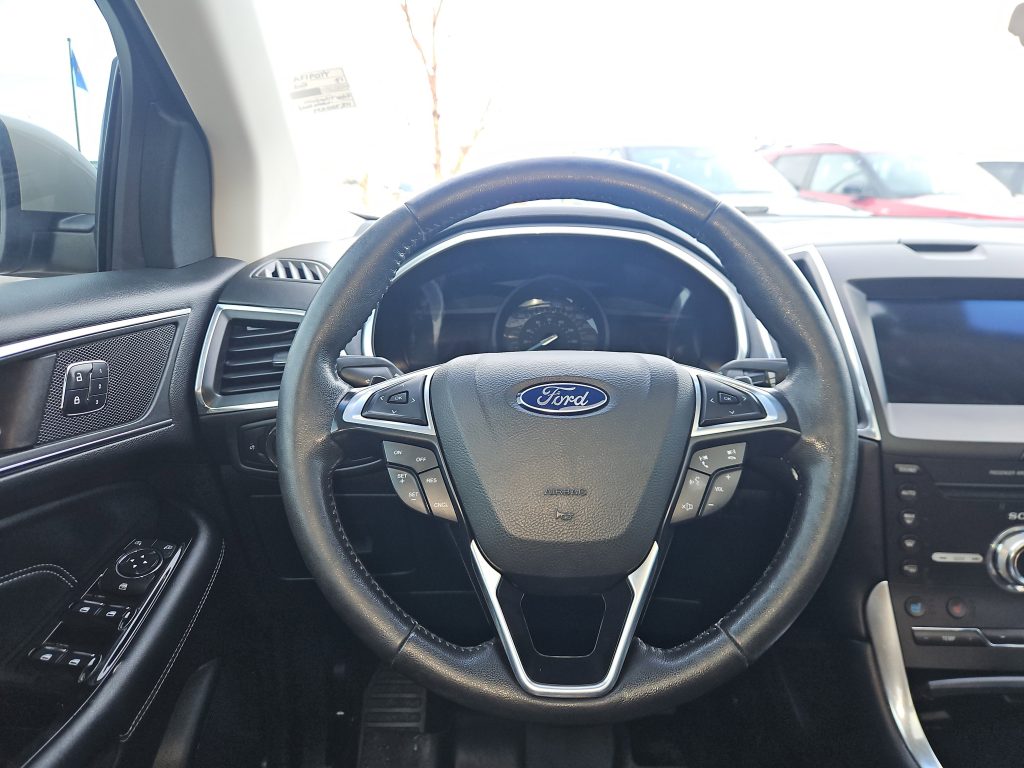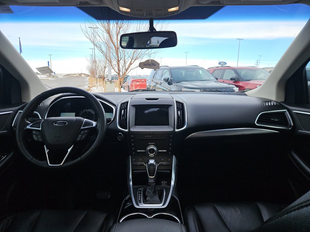 Under the hood, the Edge is powered by a spirited 2.0L EcoBoost engine, offering a turbocharged punch that makes every drive exhilarating. With all-wheel drive and advanced traction control, you can tackle any Alberta weather with ease, whether it’s a sunny day or a snowy winter morning. The active grille shutters not only enhance performance but also contribute to its striking profile.