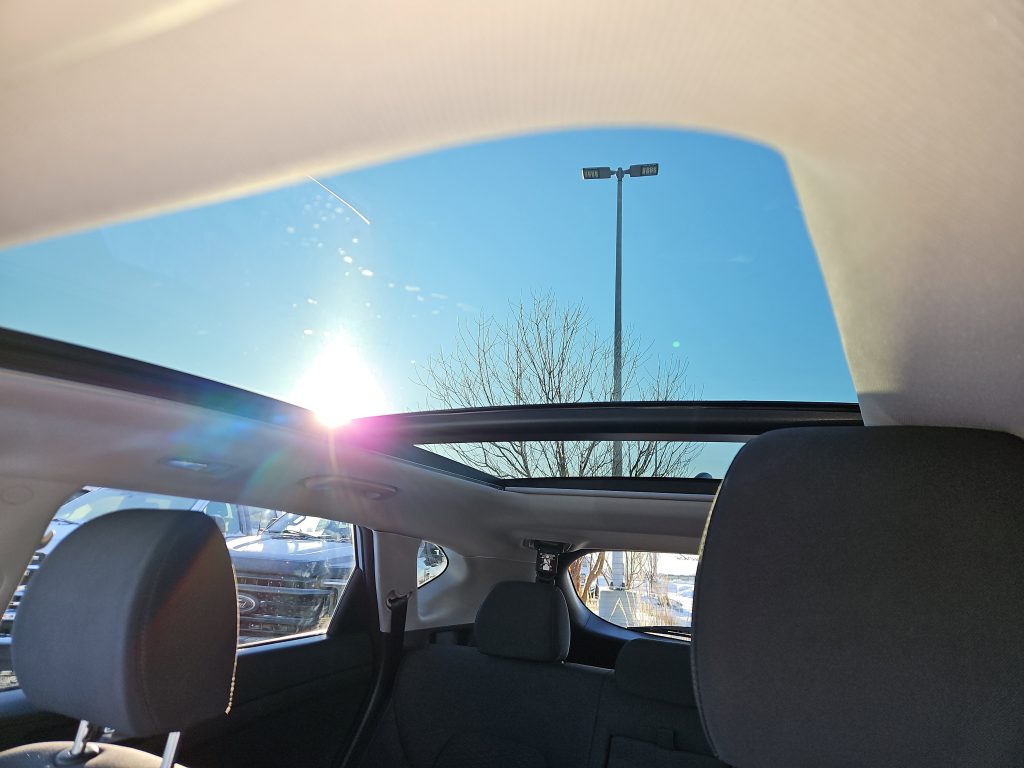 Step inside, and you’ll be greeted by a thoughtfully designed interior that prioritizes your comfort. The black cloth seat trim and heated front seats invite you to relax, while the spacious rear bench seat ensures everyone has room to stretch out. And when the sun shines bright, the panoramic sunroof lets in an abundance of natural light, enhancing the overall ambiance of your journey.