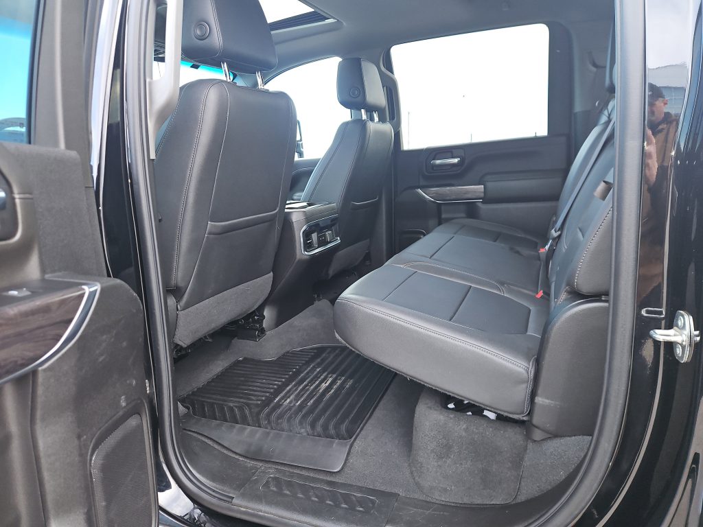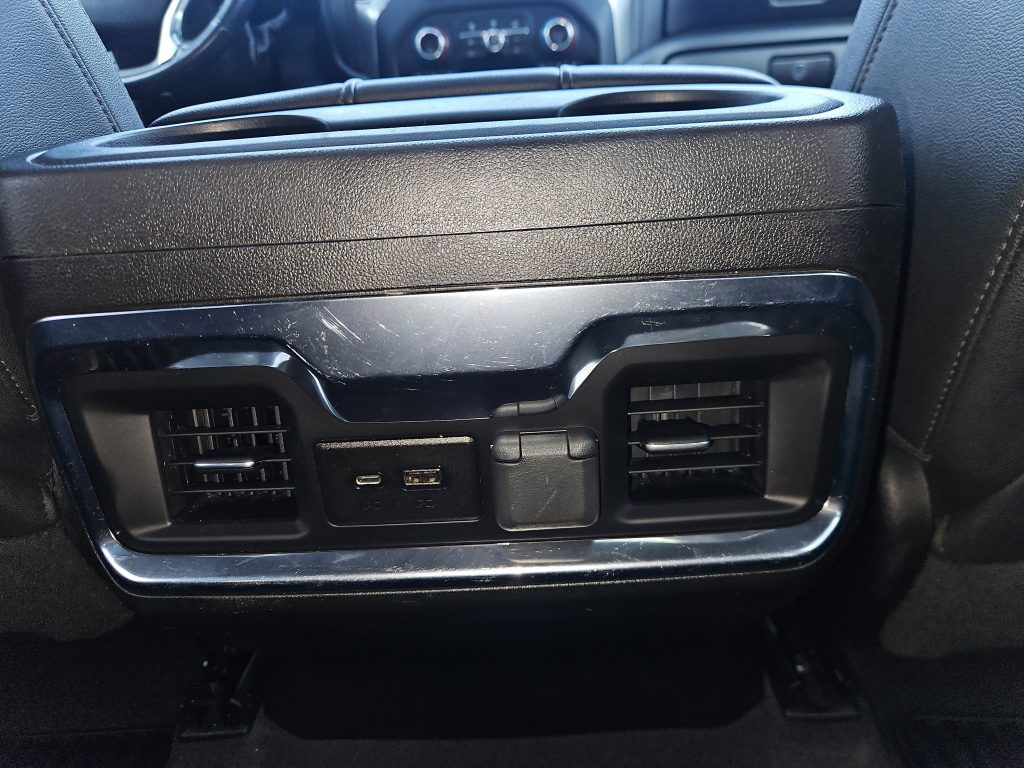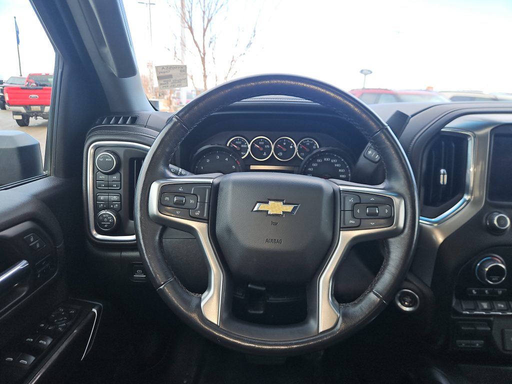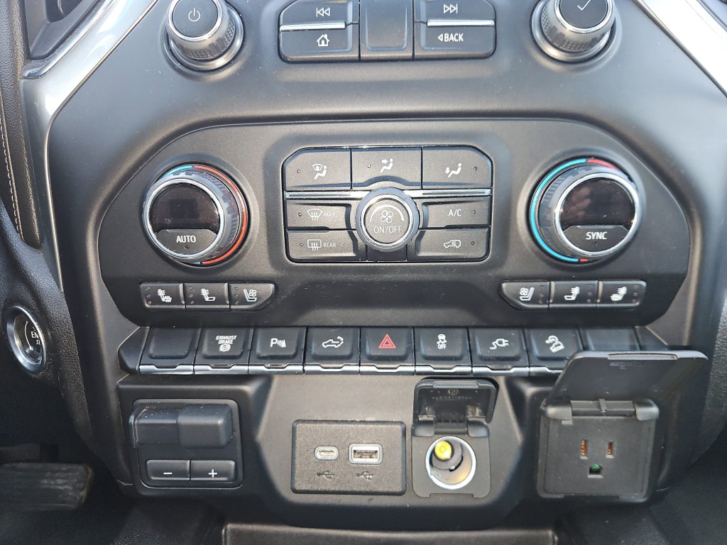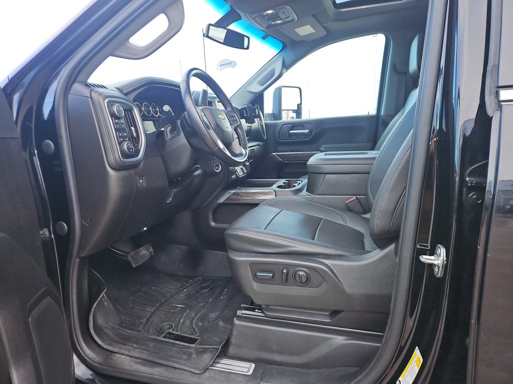 Step inside, and you’ll find a spacious, luxurious interior that’s as functional as it is comfortable. Leather seats, heated front seats, and a heated steering wheel invite you to settle in for the journey ahead. The Silverado is equipped with smart device integration and a WiFi hotspot, keeping you connected no matter where you roam. Plus, with features like a back-up camera and multi-zone climate control, every drive becomes a breeze.