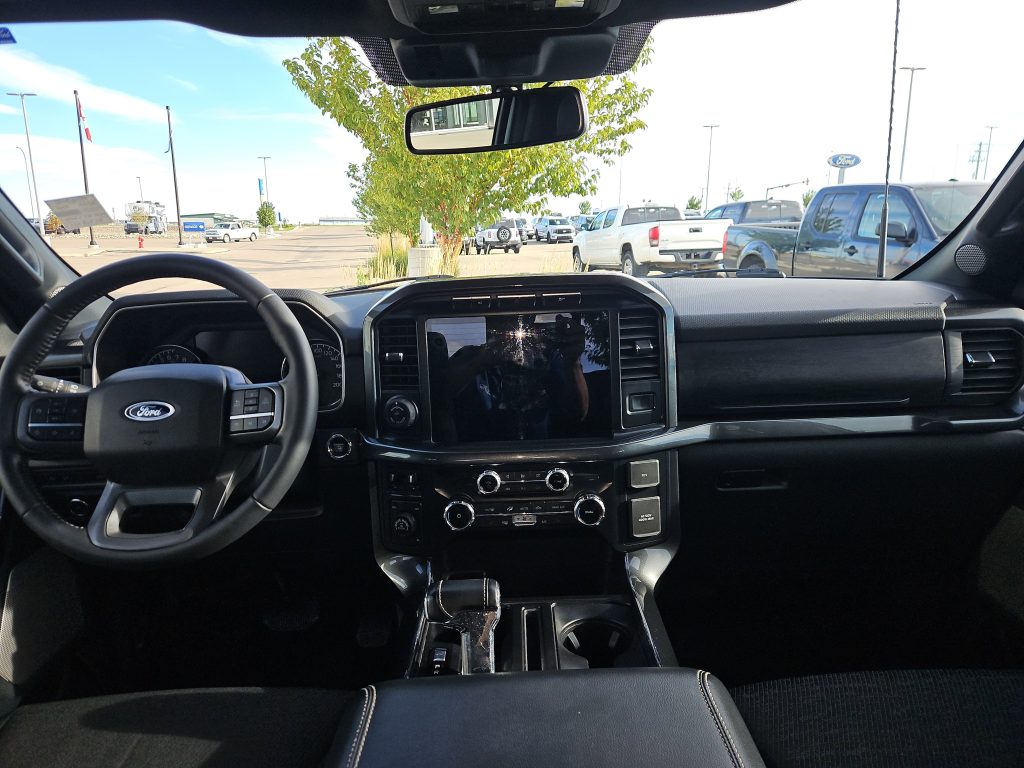But this truck isn’t just about functionality; it’s about lifestyle. Picture yourself hauling gear for a weekend getaway, or simply cruising through Grande Prairie with the family. The F-150 is equipped with all-terrain tires and tow hooks, making it the perfect companion for your next adventure, whether it’s a camping trip or a day at the lake.