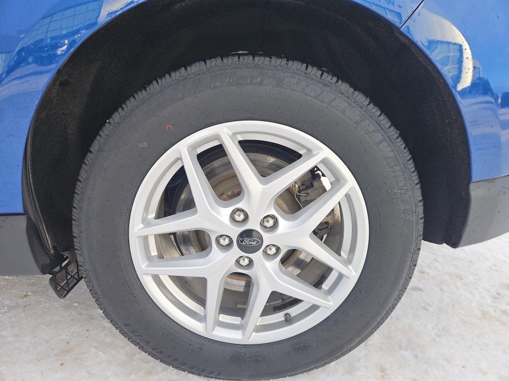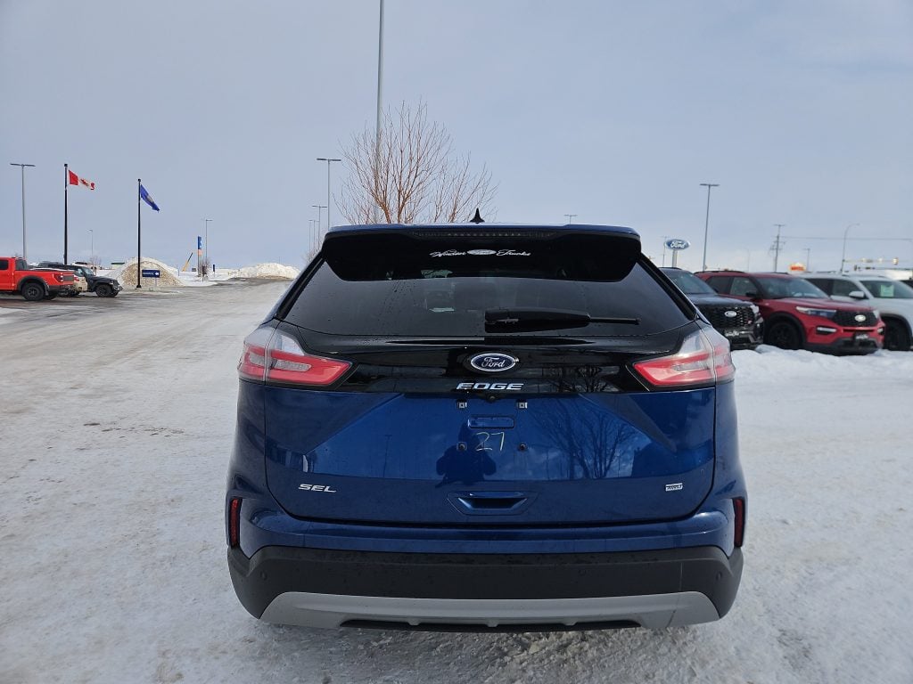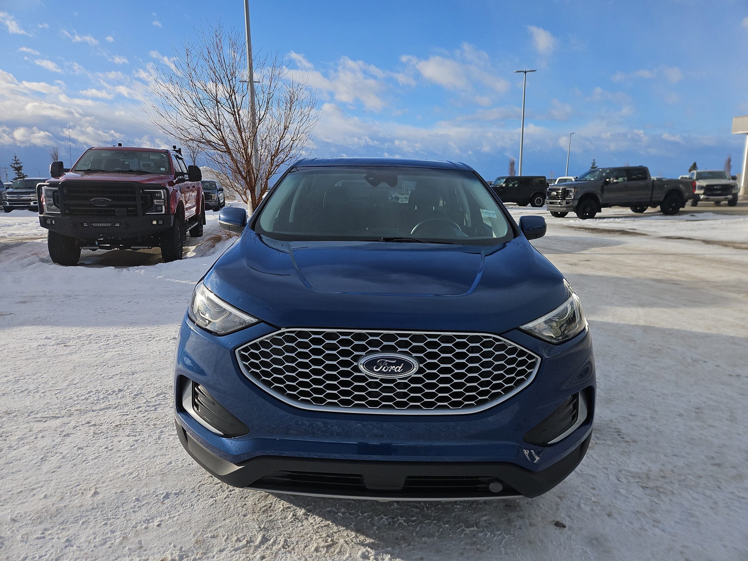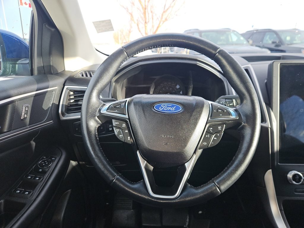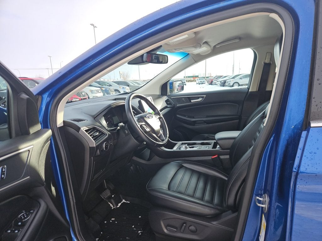 Introducing the 2023 Ford Edge SEL, a striking SUV that perfectly balances style, performance, and practicality. Dressed in a captivating blue exterior, this vehicle is designed to turn heads whether you’re navigating the bustling streets of Grande Prairie or embarking on a weekend getaway. With its sleek lines and modern design, the Edge isn’t just a mode of transportation; it’s a statement.