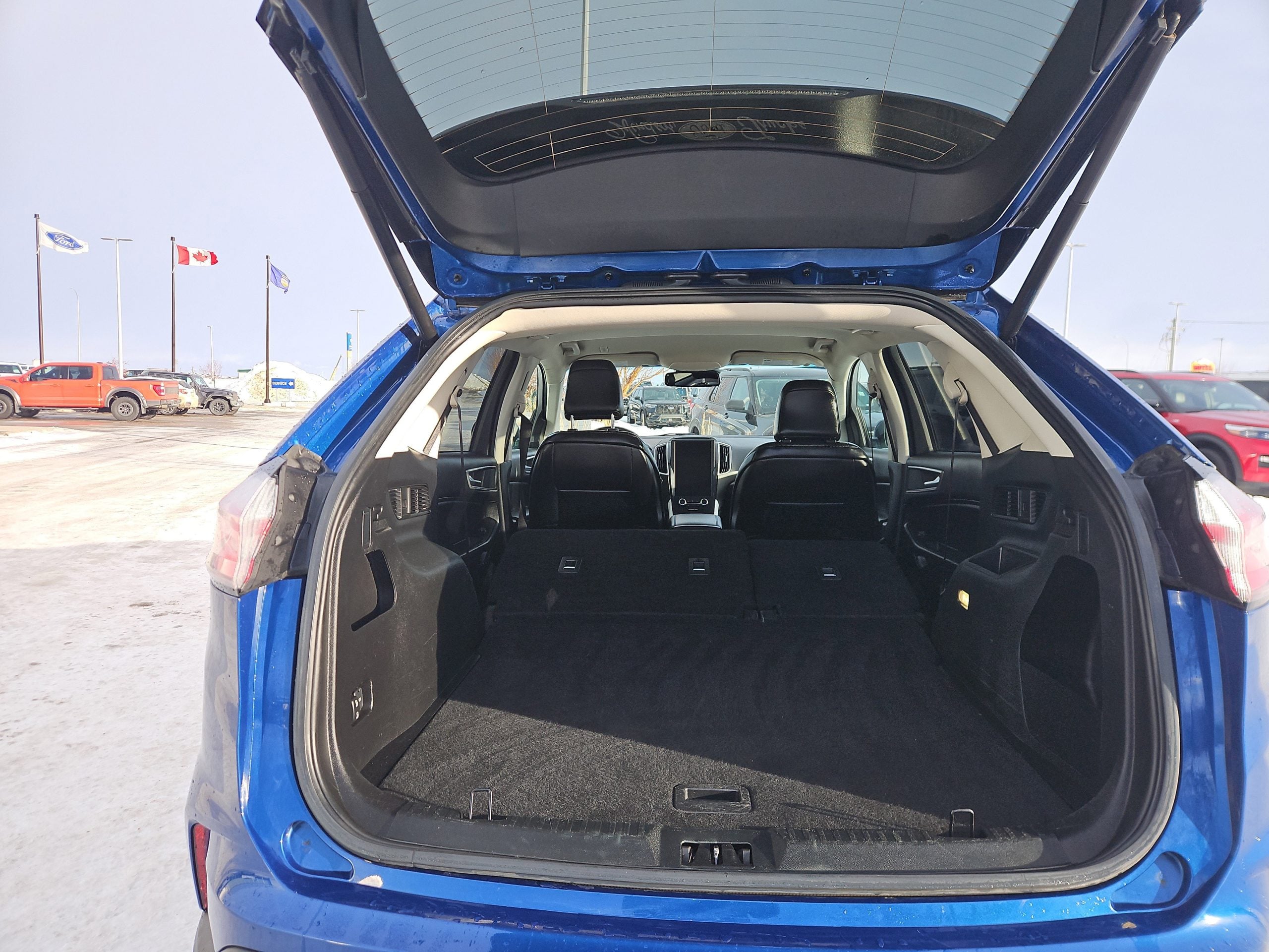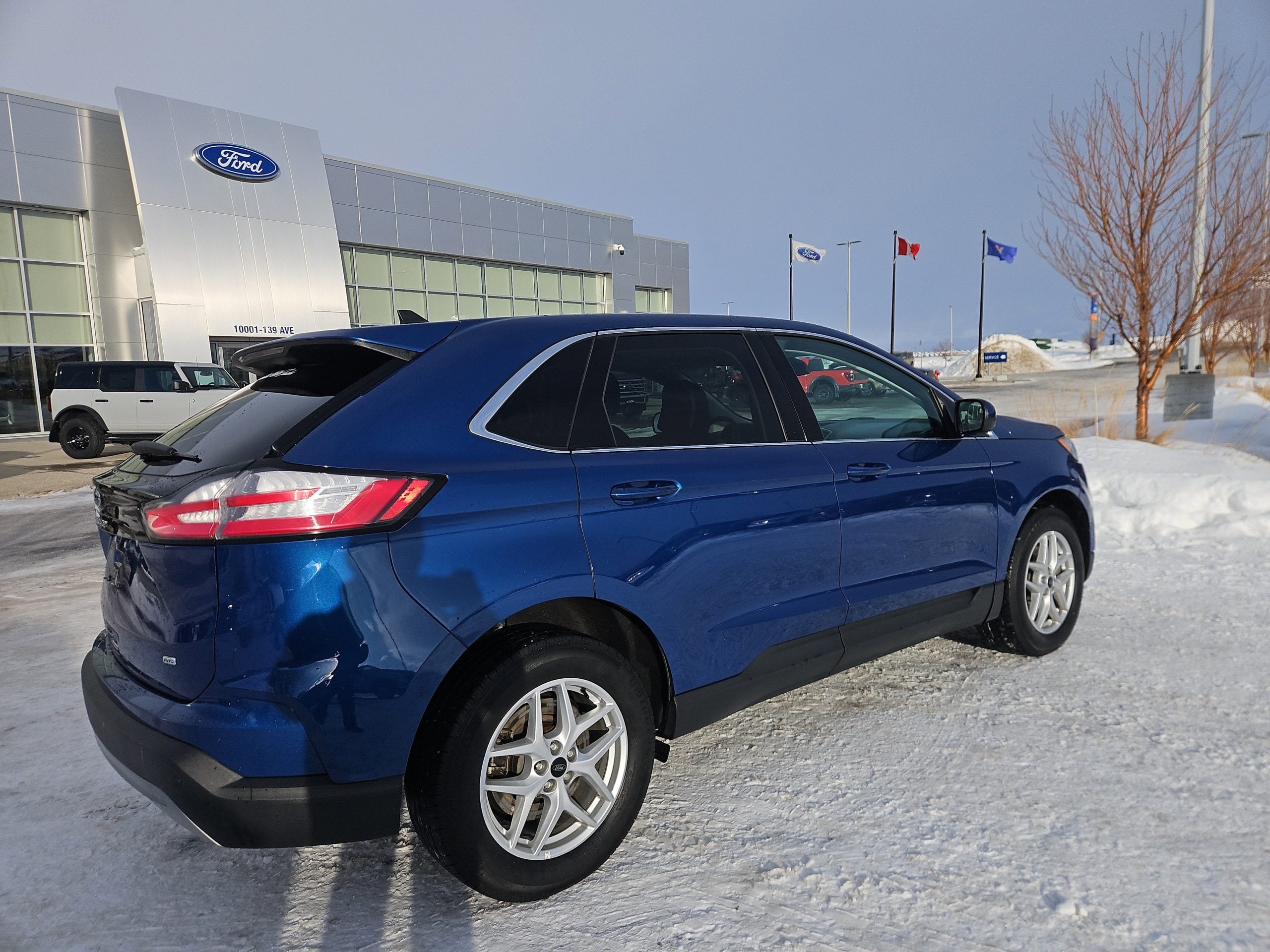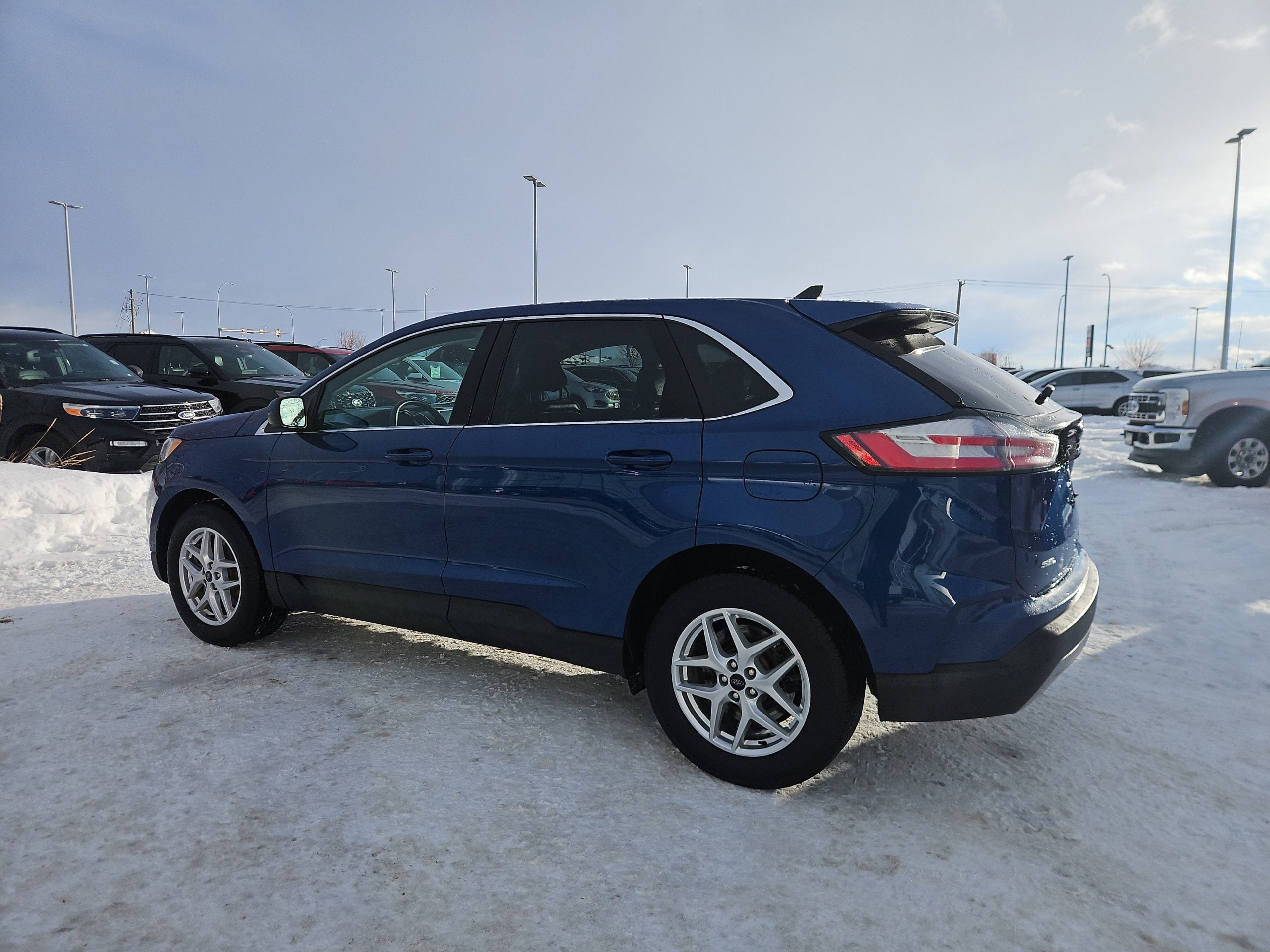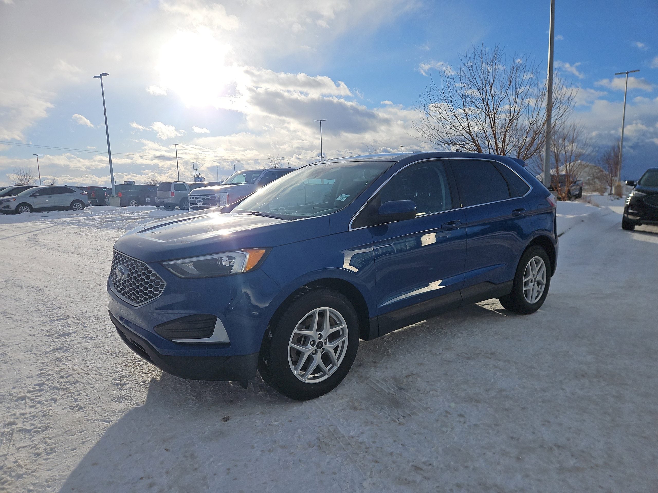 Introducing the 2023 Ford Edge SEL, a striking SUV that perfectly balances style, performance, and practicality. Dressed in a captivating blue exterior, this vehicle is designed to turn heads whether you’re navigating the bustling streets of Grande Prairie or embarking on a weekend getaway. With its sleek lines and modern design, the Edge isn’t just a mode of transportation; it’s a statement.