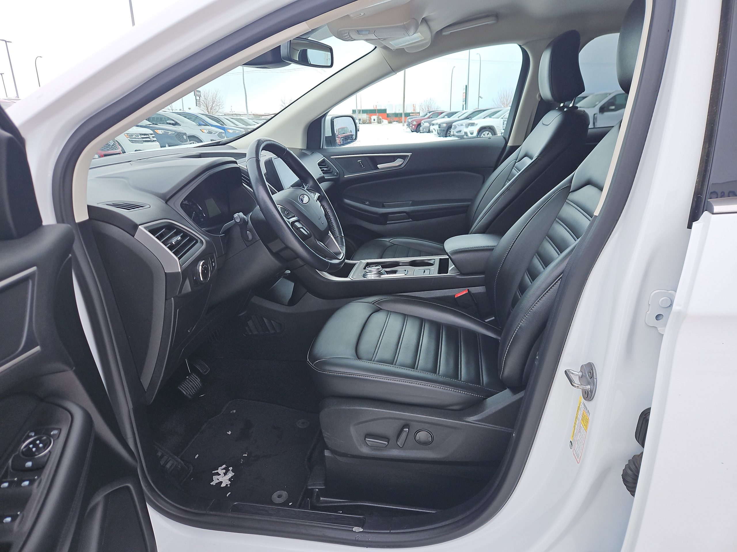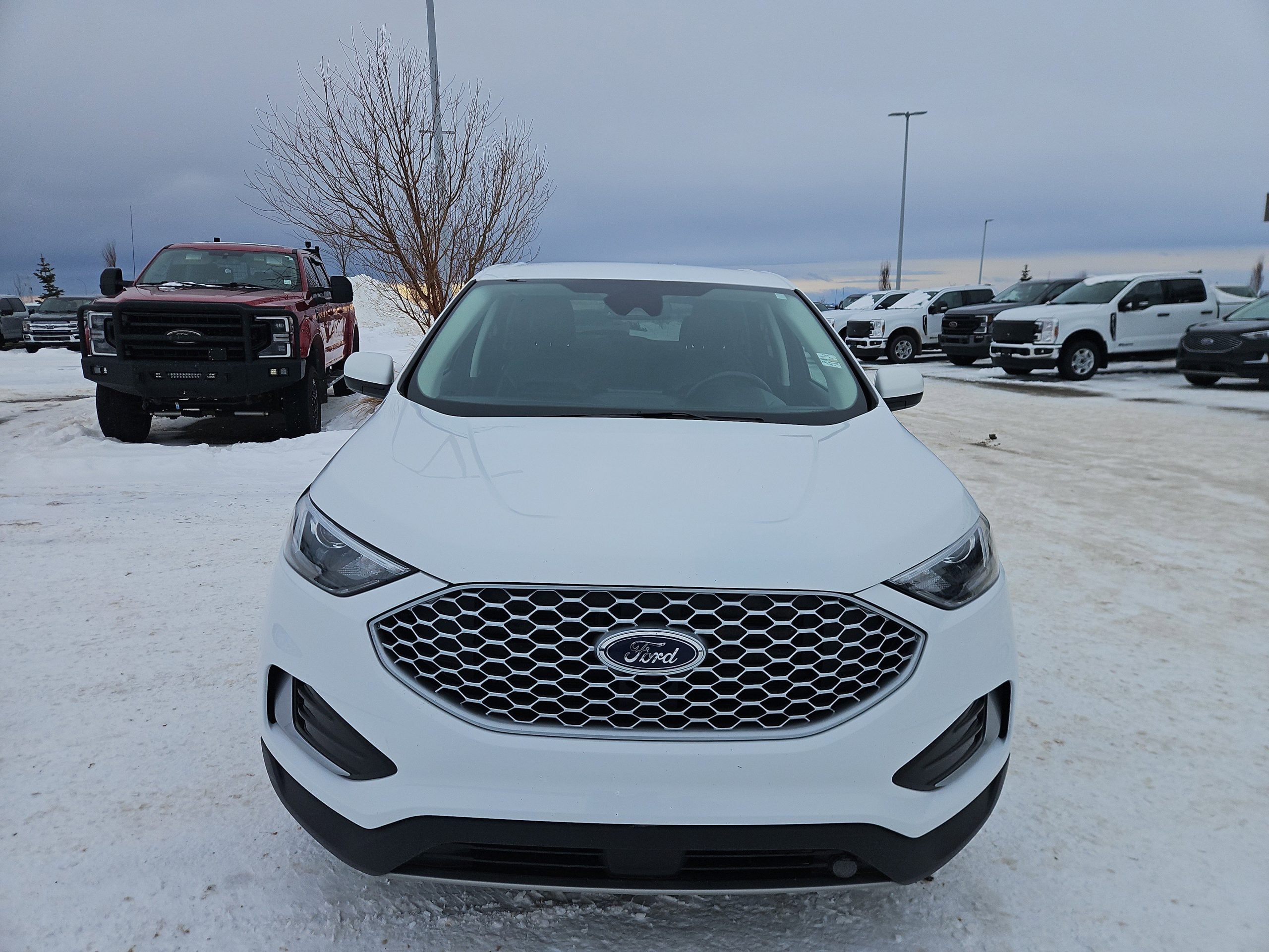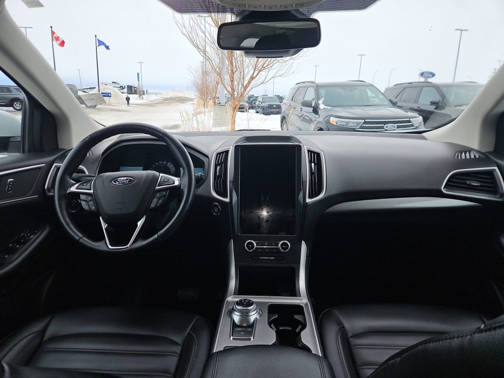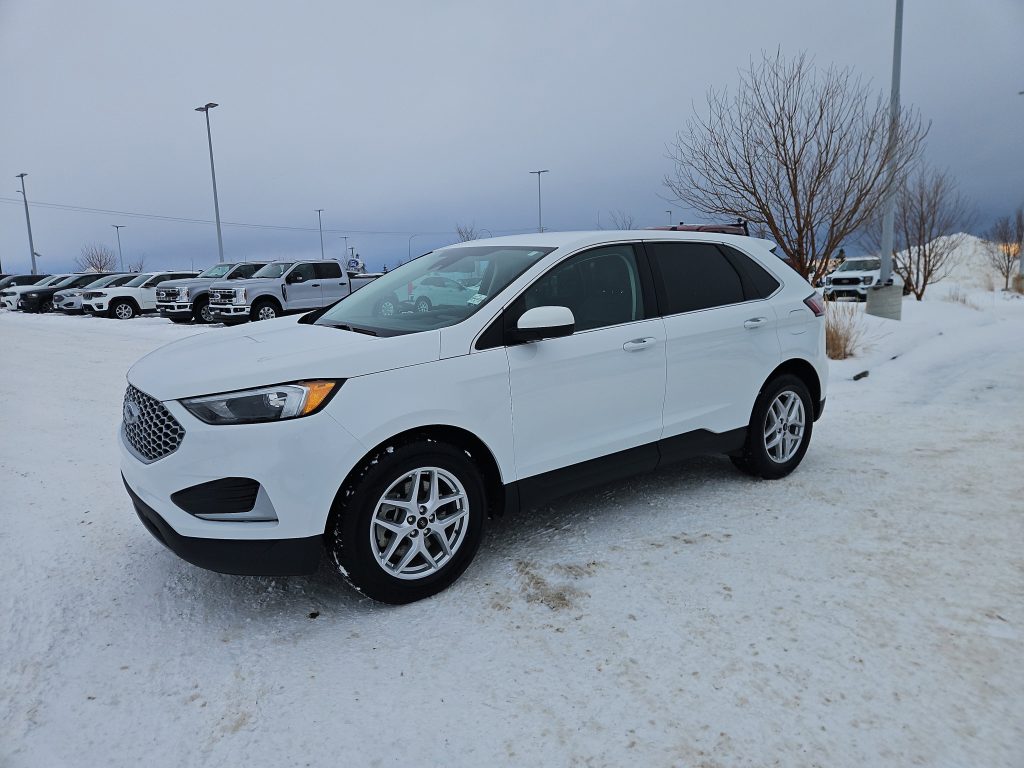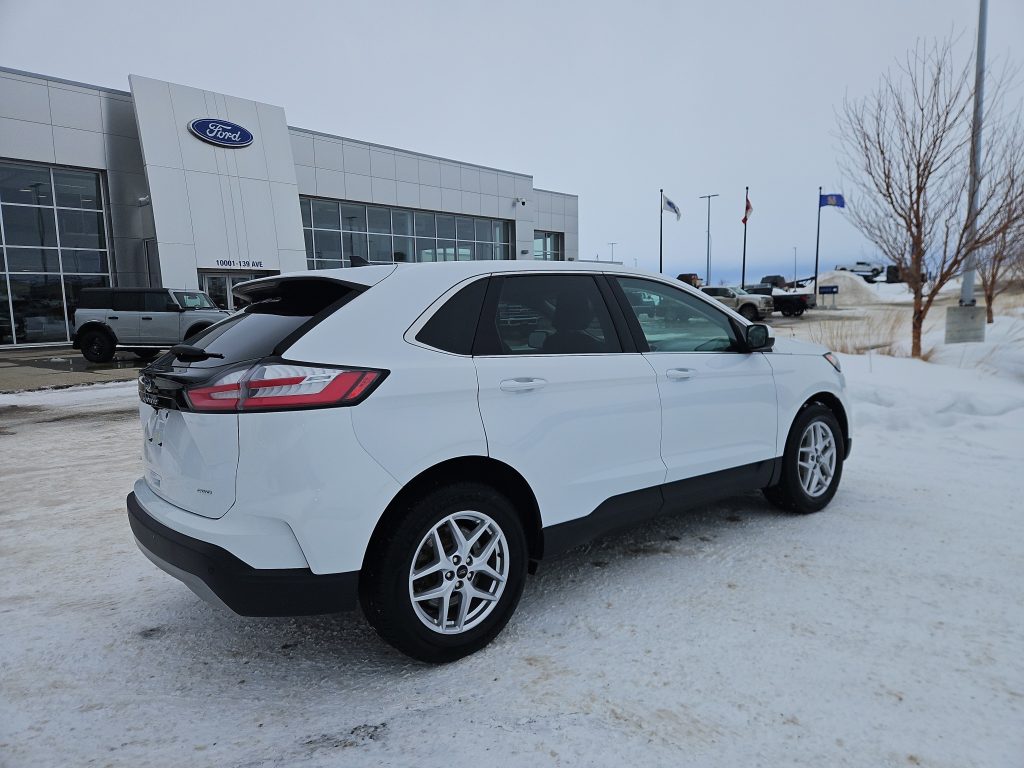 Introducing the 2023 Ford Edge SEL, a stunning blend of style, comfort, and cutting-edge technology, now available at Windsor Ford in Grande Prairie. This sleek white SUV is not just a vehicle; it’s an invitation to explore the open road with confidence and flair. With its all-wheel drive and a powerful 2.0L EcoBoost engine, the Edge promises a smooth ride, whether you’re navigating city streets or embarking on weekend adventures in the beautiful Alberta wilderness.