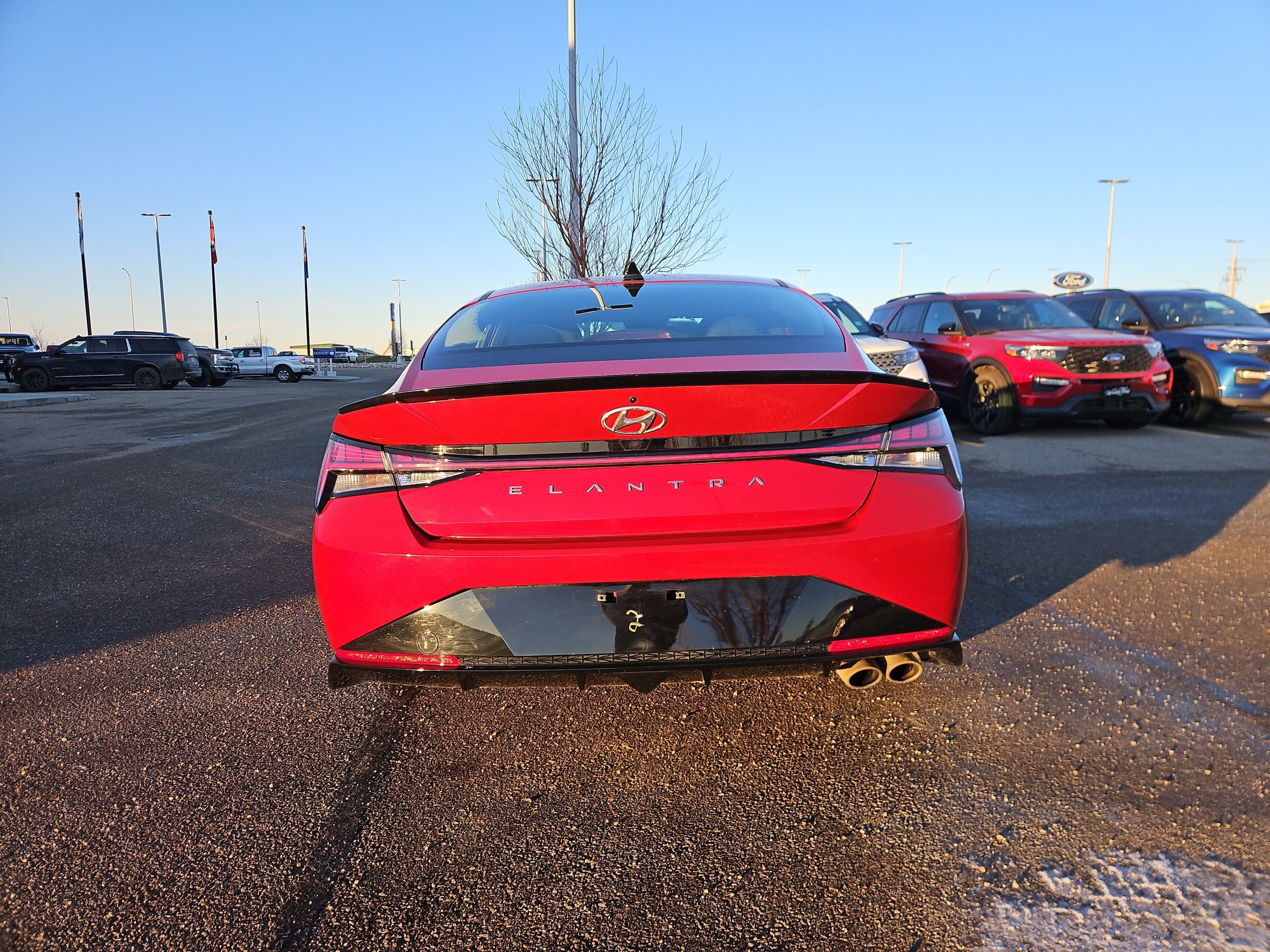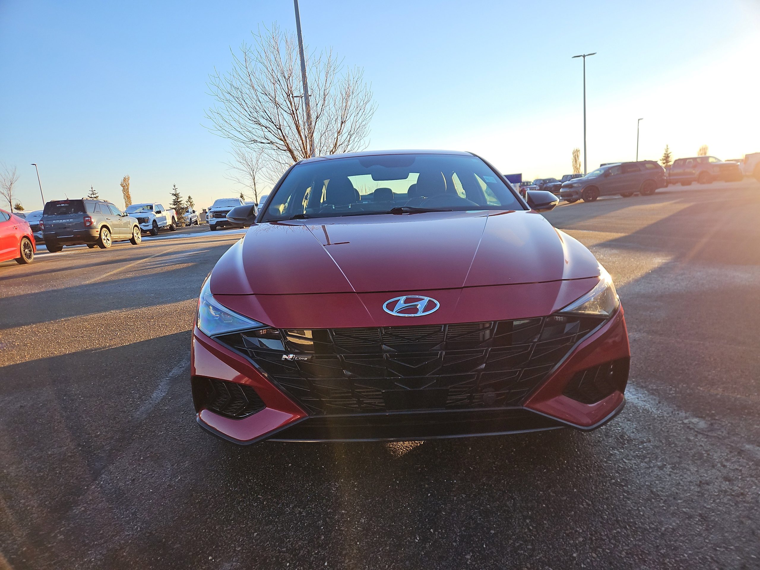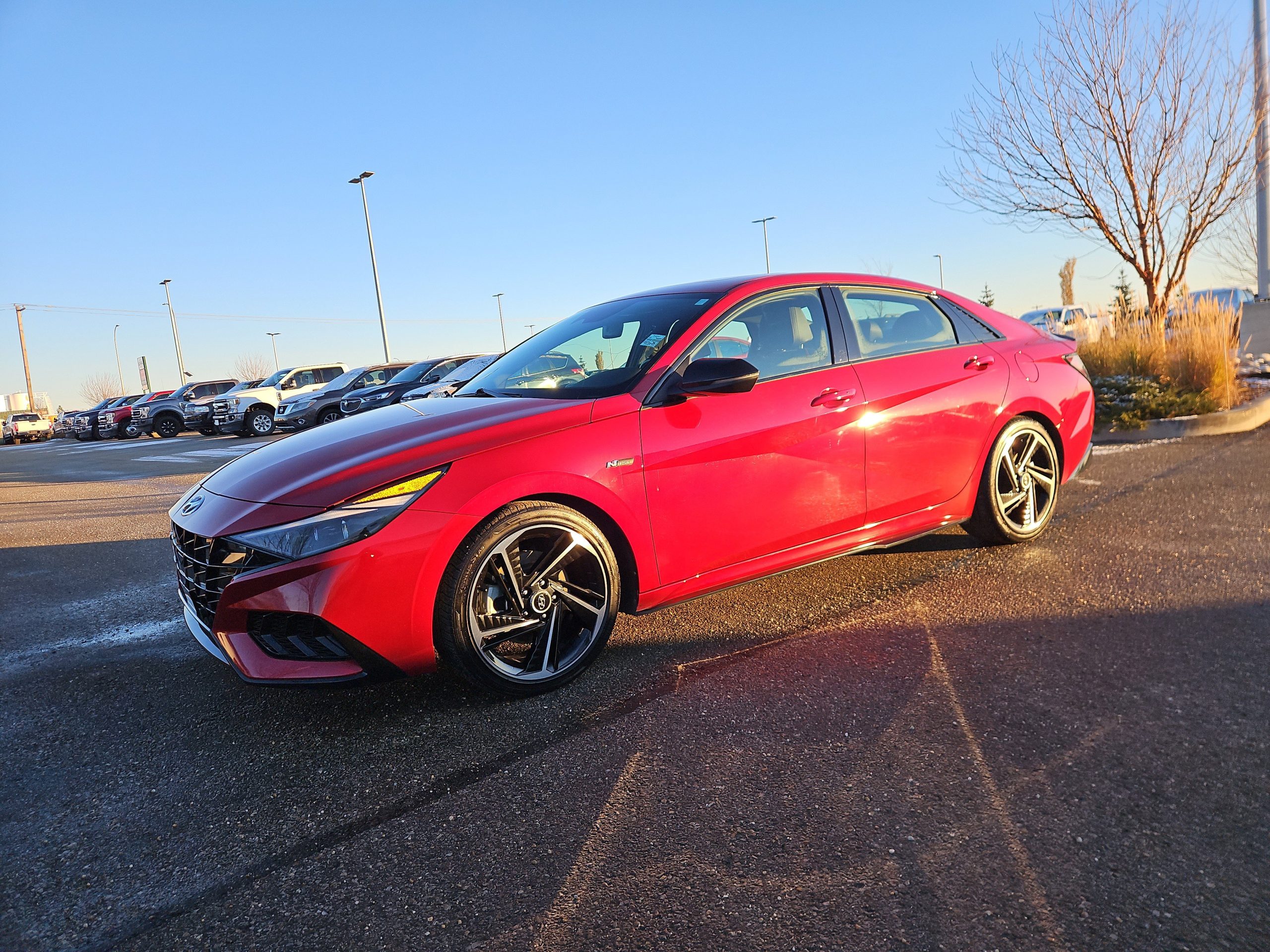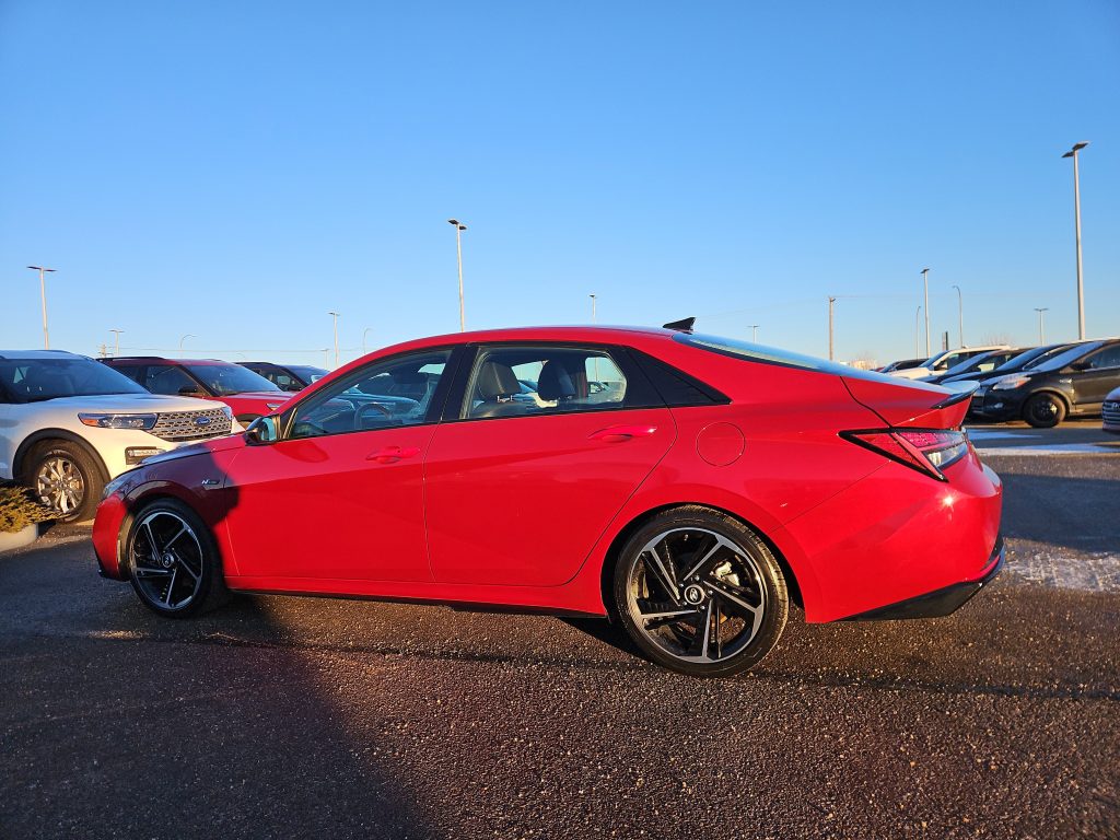 Introducing the stunning 2023 Hyundai Elantra N Line Ultimate, a vehicle that perfectly balances performance with everyday practicality. Dressed in a vibrant Fiery Red exterior, this car is not just a mode of transportation; it’s a statement on the road. With its sleek lines and sporty design, it captures attention at every turn, making it an ideal companion for both city commutes and weekend adventures.