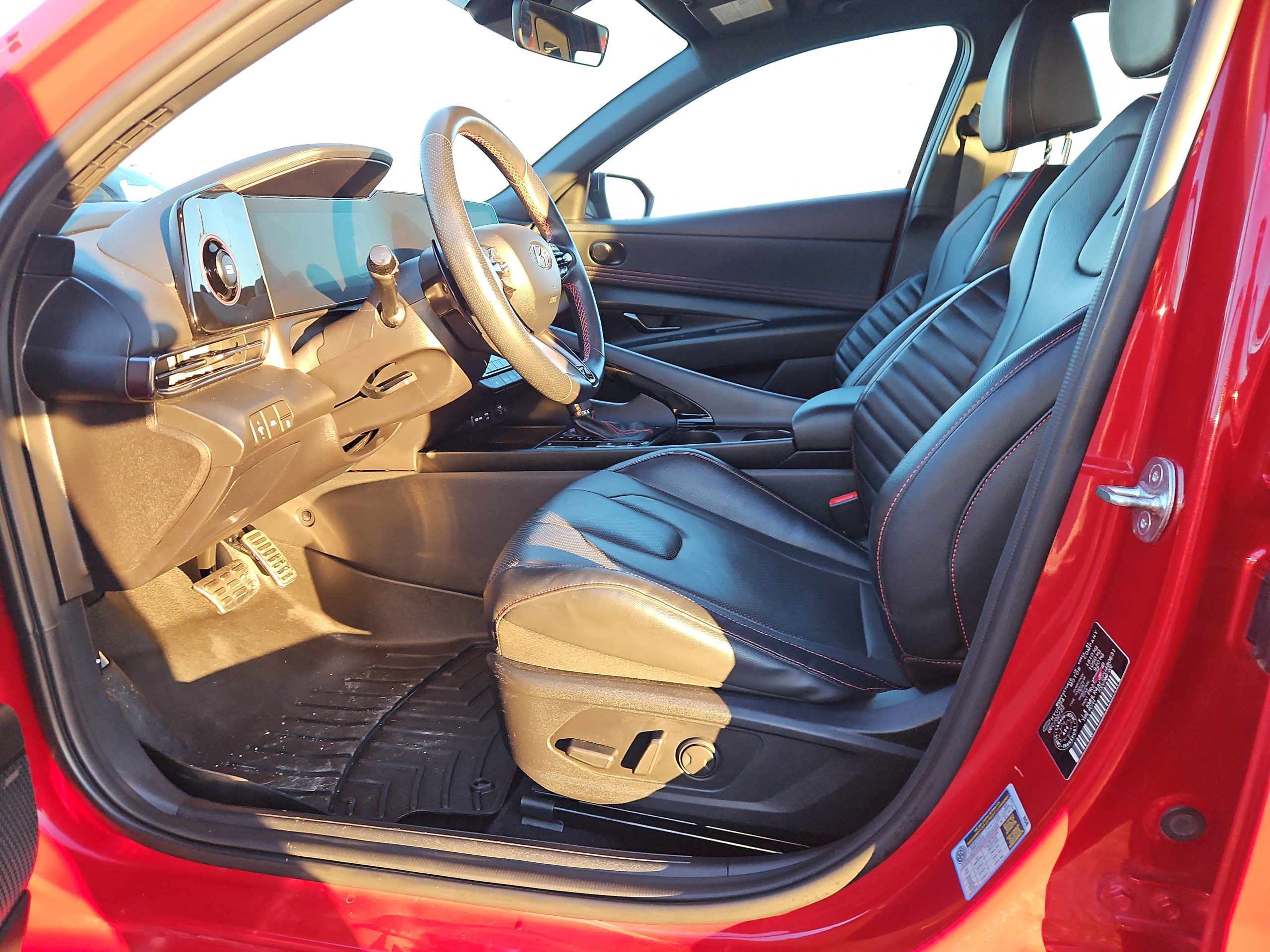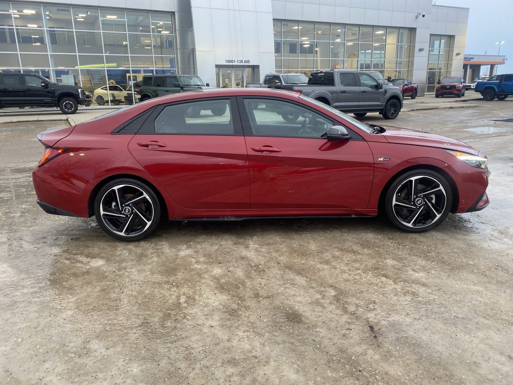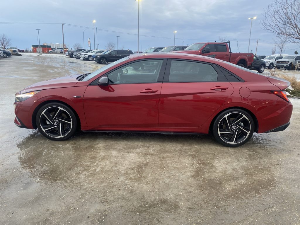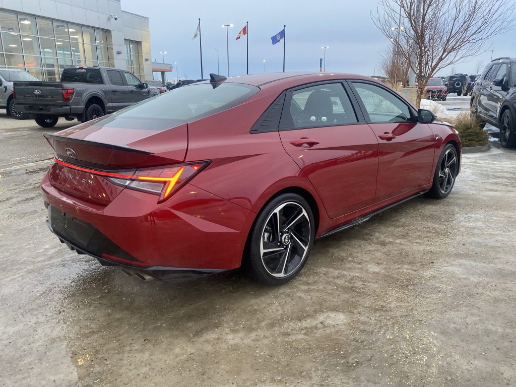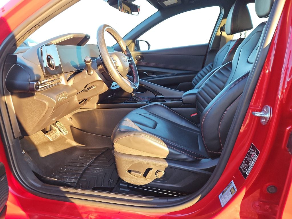 Introducing the stunning 2023 Hyundai Elantra N Line Ultimate, a vehicle that perfectly balances performance with everyday practicality. Dressed in a vibrant Fiery Red exterior, this car is not just a mode of transportation; it’s a statement on the road. With its sleek lines and sporty design, it captures attention at every turn, making it an ideal companion for both city commutes and weekend adventures.