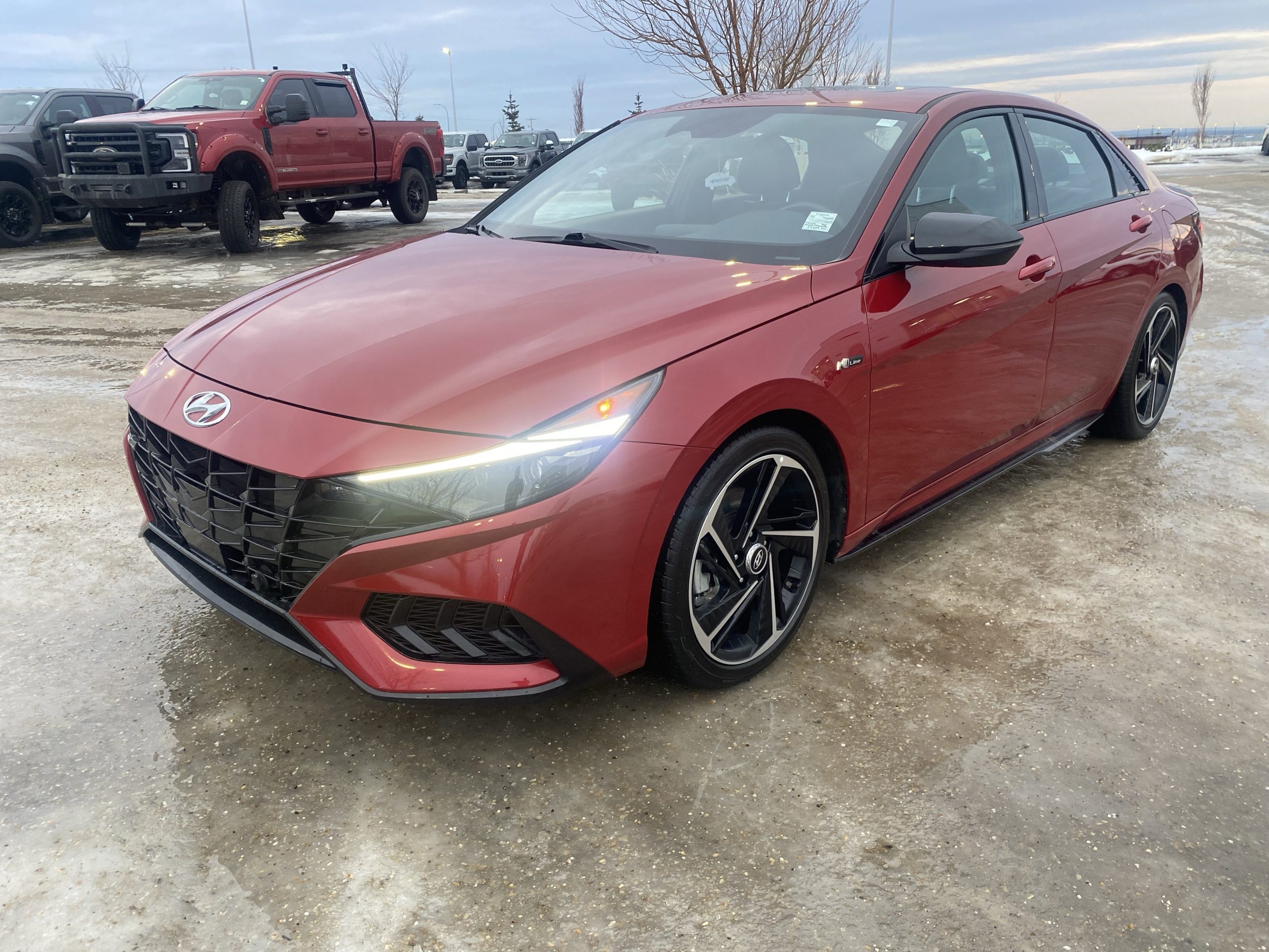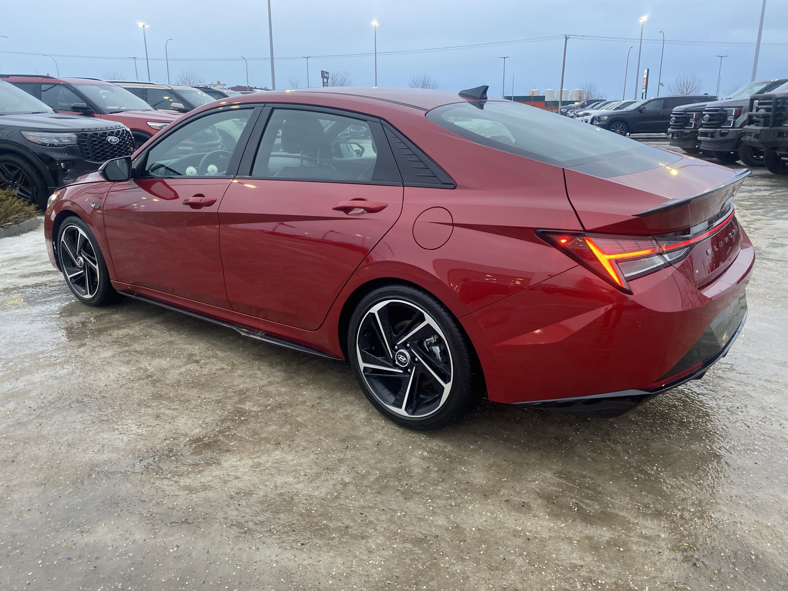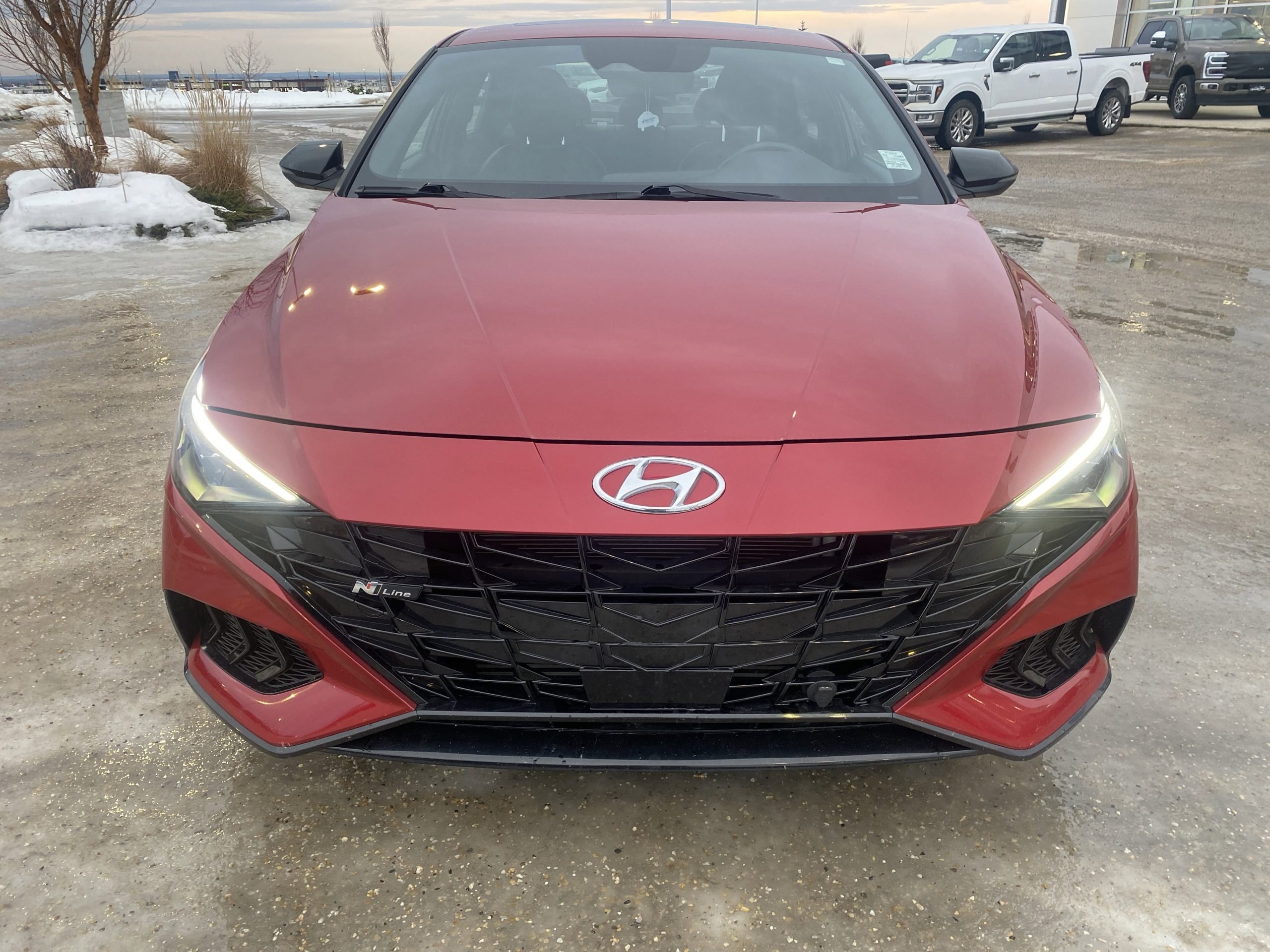 Introducing the stunning 2023 Hyundai Elantra N Line Ultimate, a vehicle that perfectly balances performance with everyday practicality. Dressed in a vibrant Fiery Red exterior, this car is not just a mode of transportation; it’s a statement on the road. With its sleek lines and sporty design, it captures attention at every turn, making it an ideal companion for both city commutes and weekend adventures.