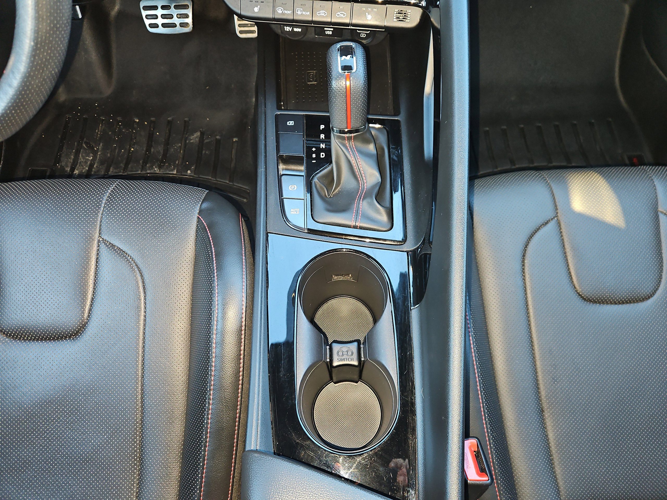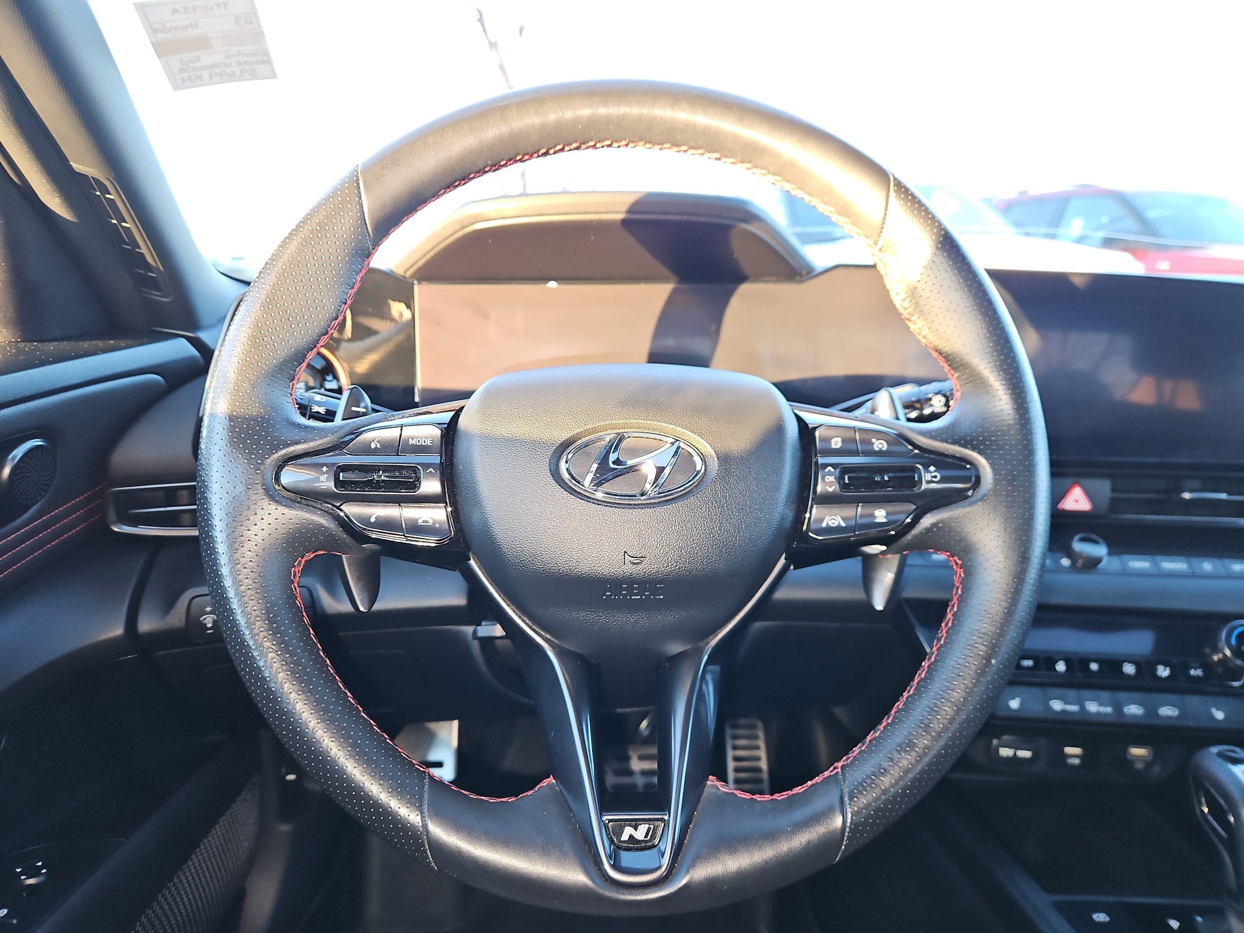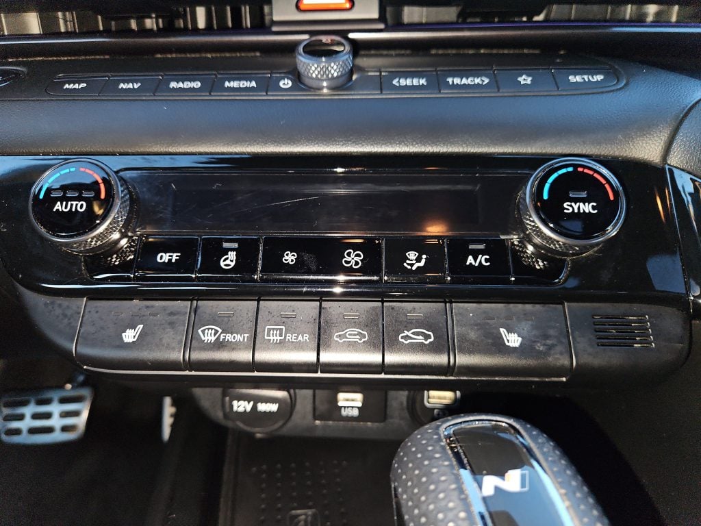 Step inside, and you’ll find a luxurious cabin adorned with black leather seating surfaces, complete with striking red stitching that adds a touch of flair. The multi-zone A/C and heated front seats promise comfort no matter the weather, while the premium sound system transforms every drive into a concert experience. Need to stay connected? The Elantra’s smart device integration and Bluetooth connectivity keep you in touch with what matters most.
