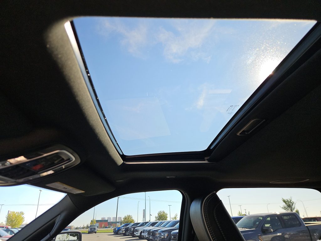 Step inside, and you’ll find a luxurious interior featuring black leather front vented bucket seats that cradle you in comfort. The power sunroof invites natural light, enhancing the cabin’s spacious feel. With advanced technology like Bluetooth connectivity and a premium sound system, every drive becomes an experience to savor. Plus, the rear auto-leveling air suspension ensures a smooth ride, whether you’re on the highway or off the beaten path.