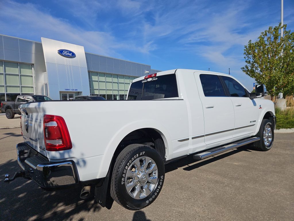 Introducing the 2023 Ram 2500 Limited, a truck that embodies strength and sophistication, now available at Windsor Ford in Grande Prairie. This striking vehicle, dressed in Bright White, is not just a mode of transportation; it’s a statement on wheels. With its SuperCrew cab, you’ll have ample space for family, friends, or all your gear—perfect for those weekend getaways or worksite adventures.