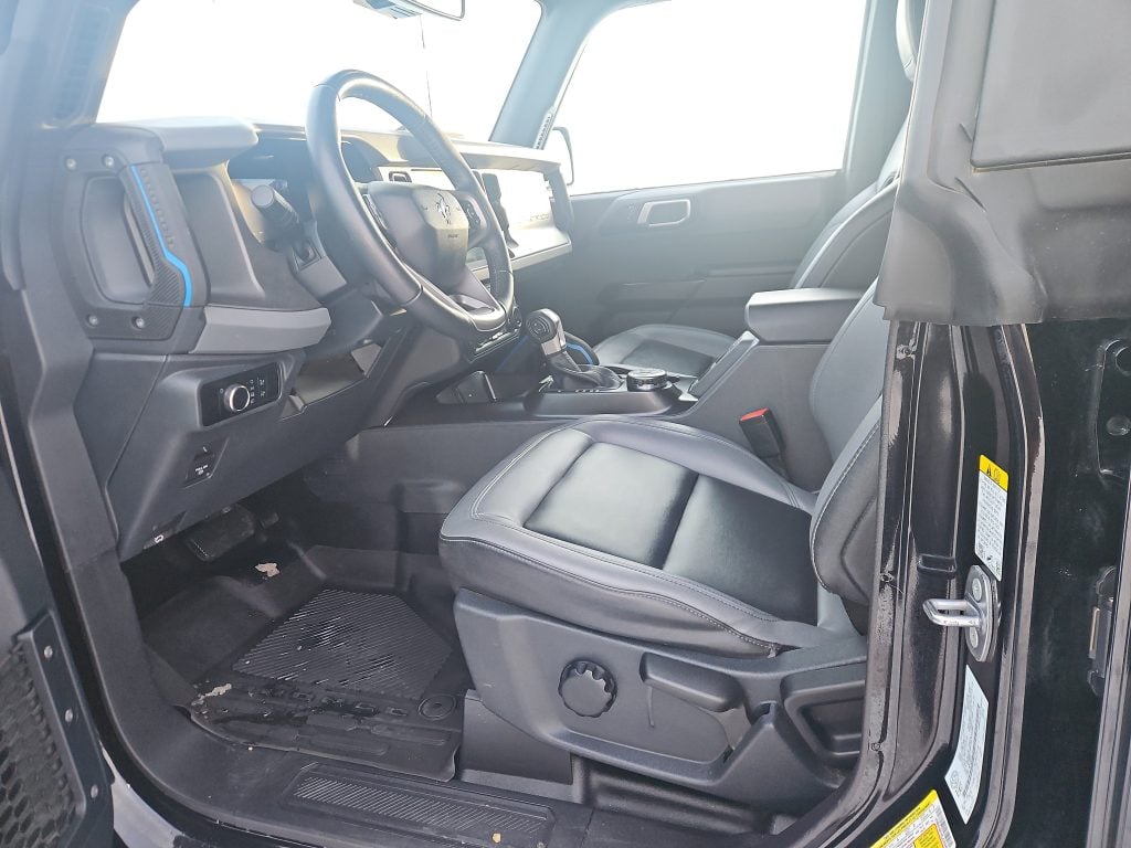 Inside, the Bronco doesn’t skimp on comfort or technology. With heated front seats and dual-zone electronic climate control, every journey is a pleasure, no matter the weather. The Black Onyx interior, paired with vinyl grey/black seats, creates a sleek and modern atmosphere. Plus, with Ford Co-Pilot360, you’ll enjoy peace of mind with features like pre-collision assist and blind-spot monitoring, making every drive safer.